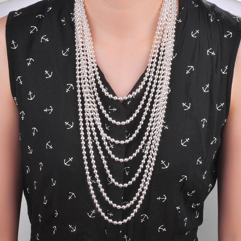 Ожерелье, браслет из бисера, свитер, инкрустация камня, короткая цепочка до ключиц, аксессуар, серебро 925 пробы, японские и корейские, простой и элегантный дизайн