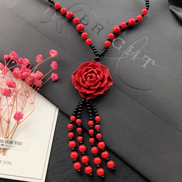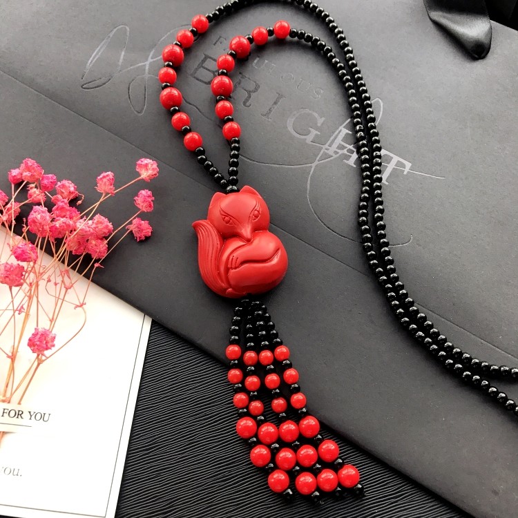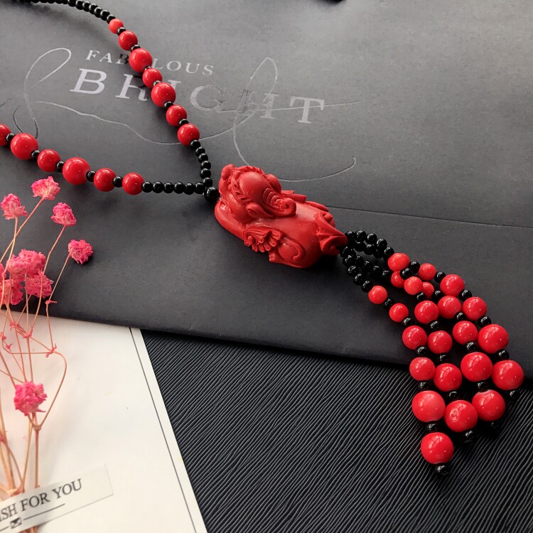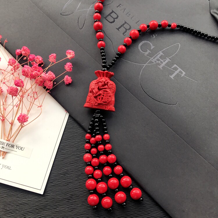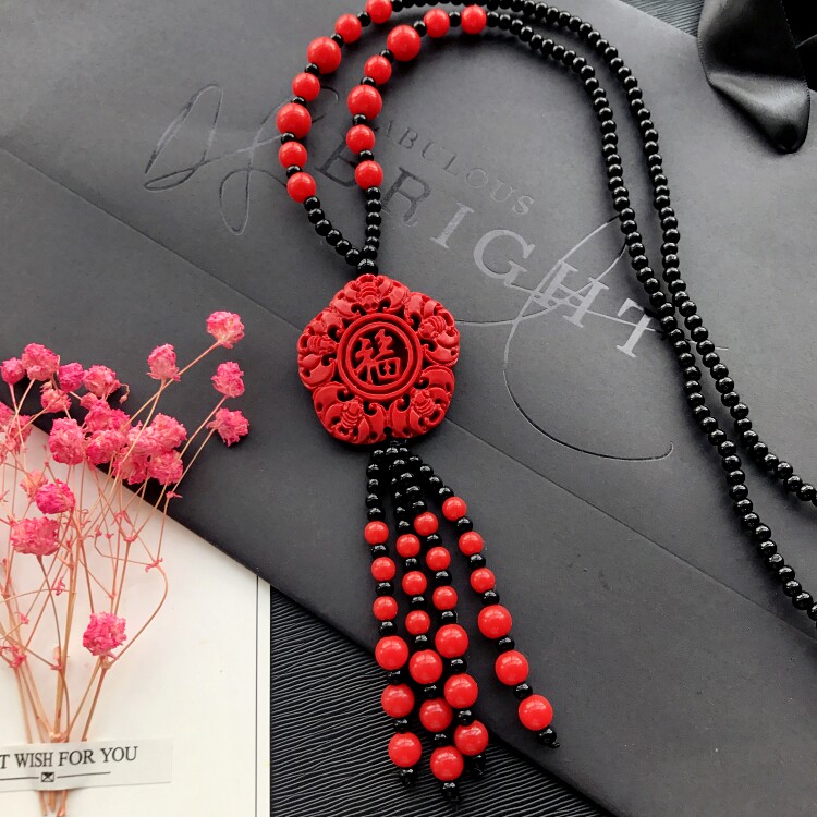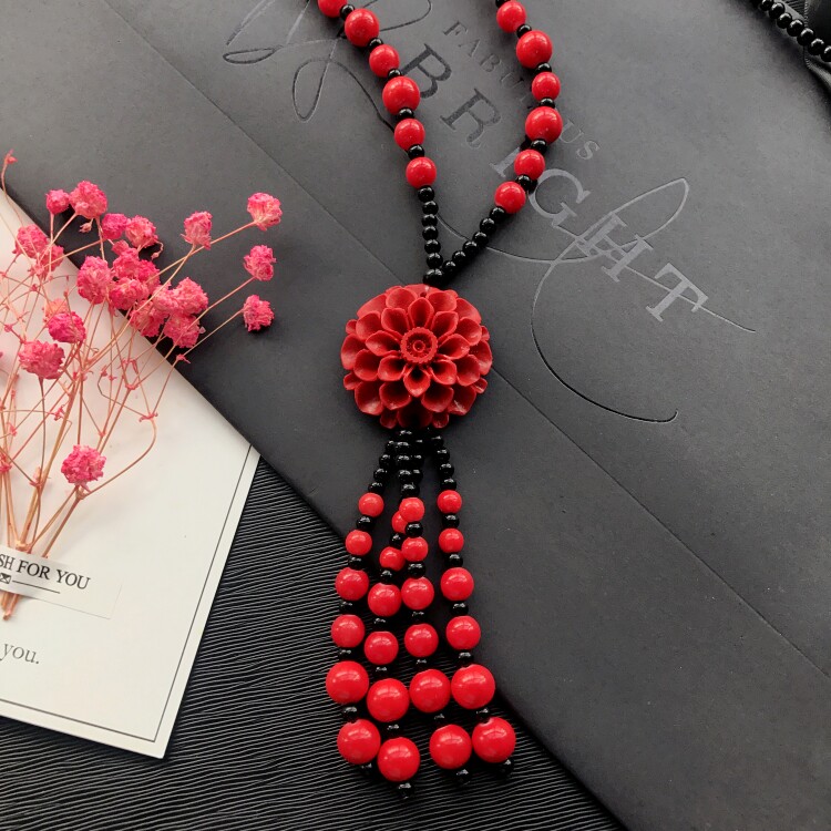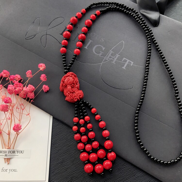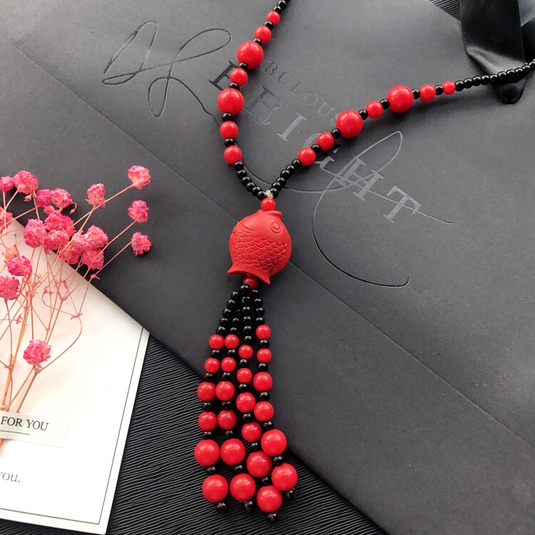 Этнический ретро аксессуар, свитер, универсальный длинный оберег на день рождения, ожерелье, этнический стиль, цвета киновари