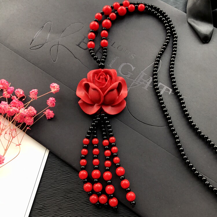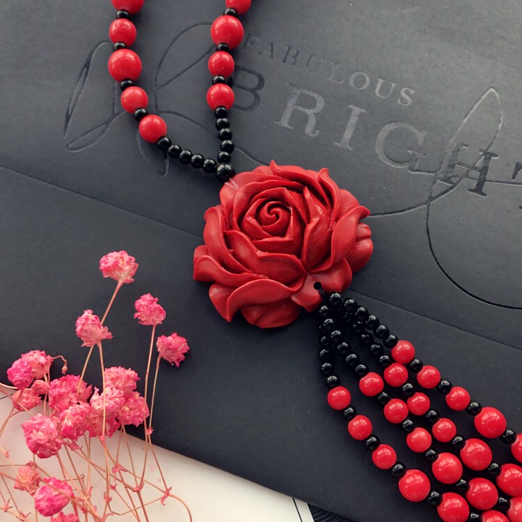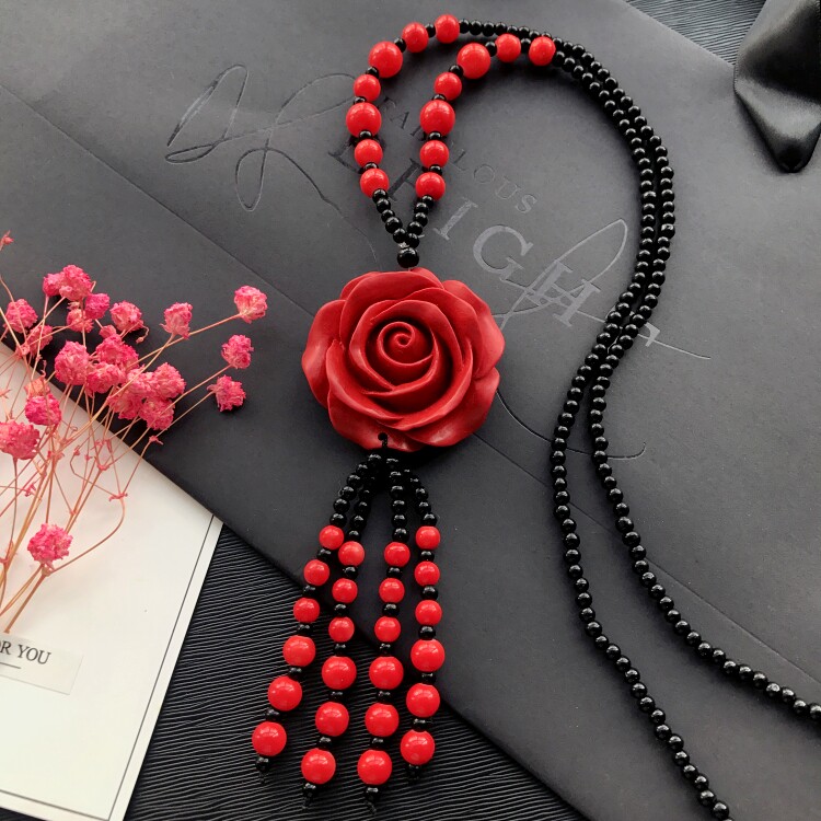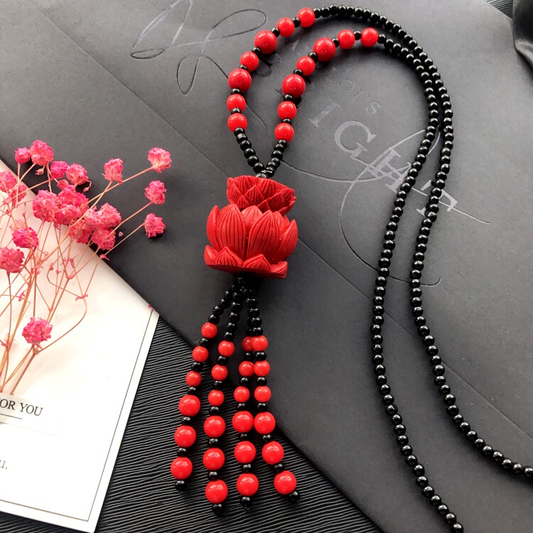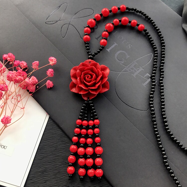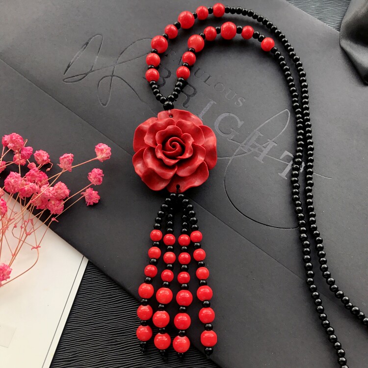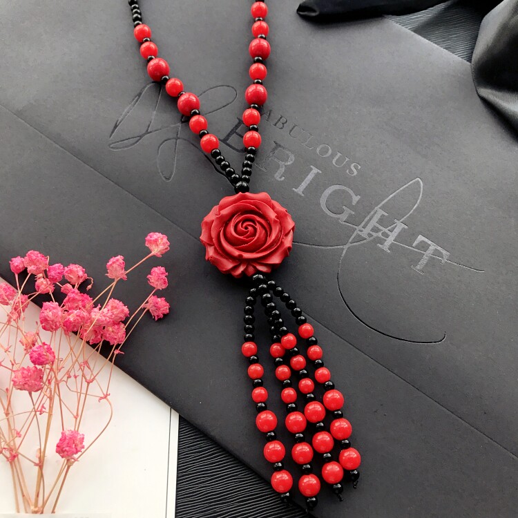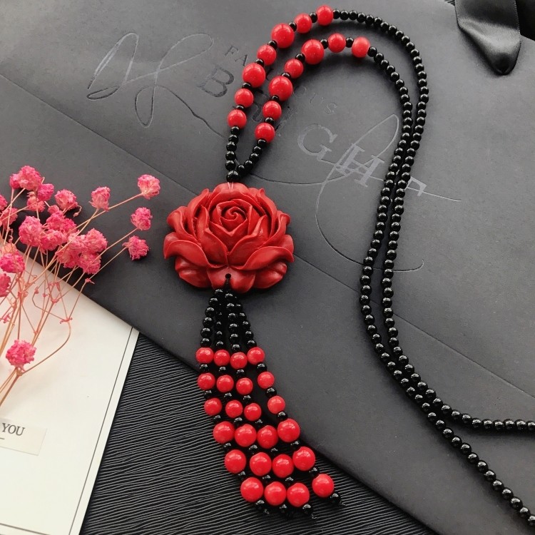 Этнический ретро аксессуар, свитер, универсальный длинный оберег на день рождения, ожерелье, этнический стиль, цвета киновари