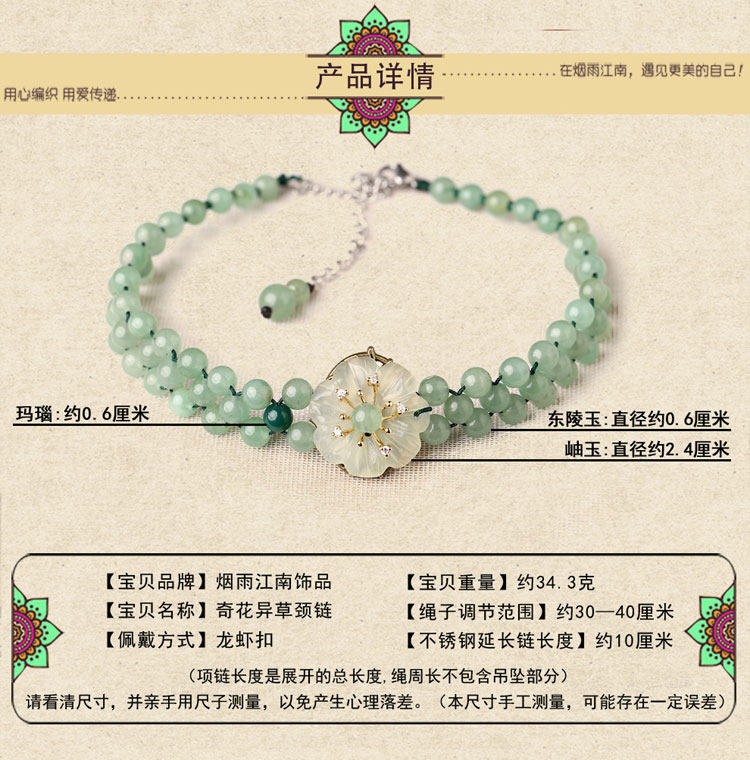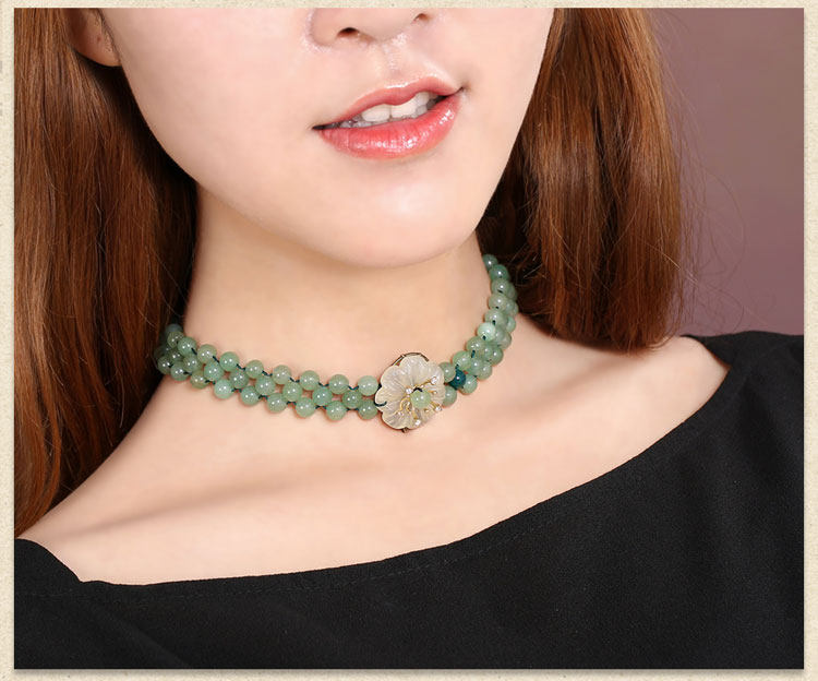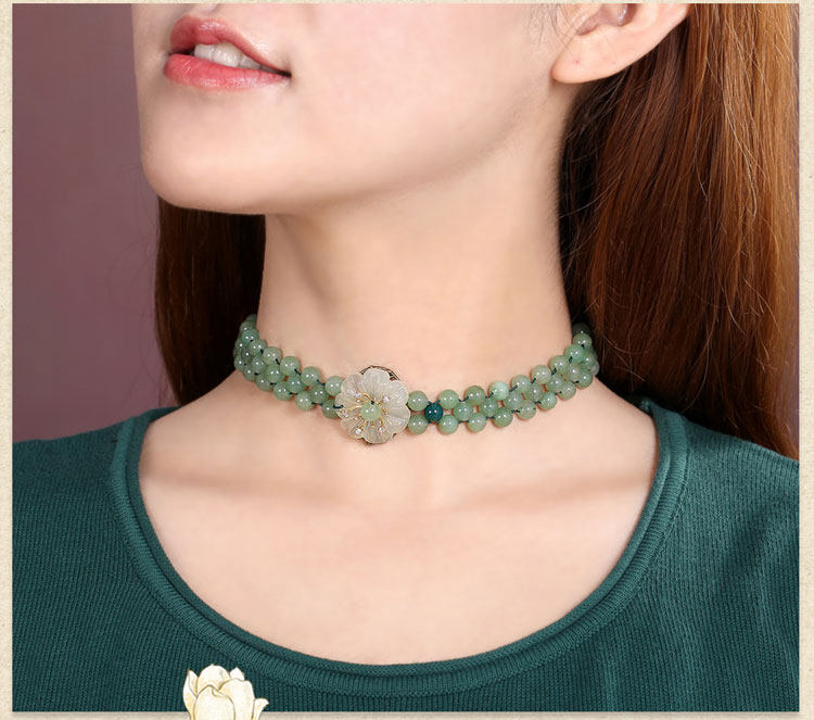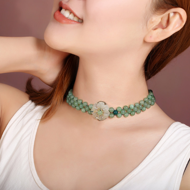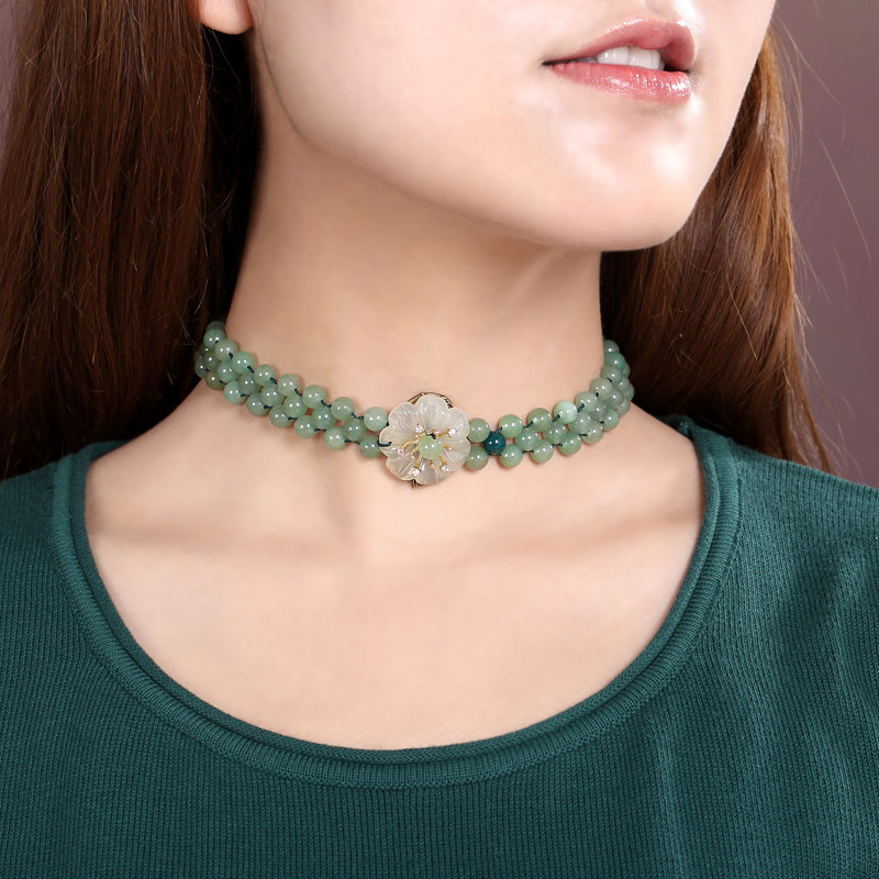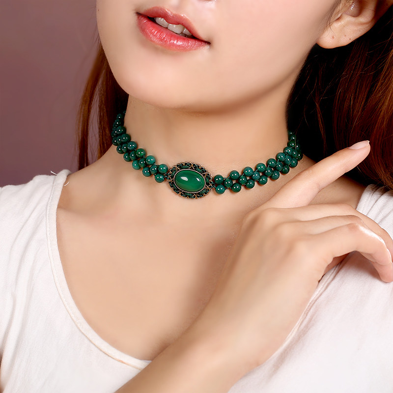 Модное ожерелье, ретро этническая цепочка до ключиц, короткий чокер из нефрита, в стиле панк, этнический стиль