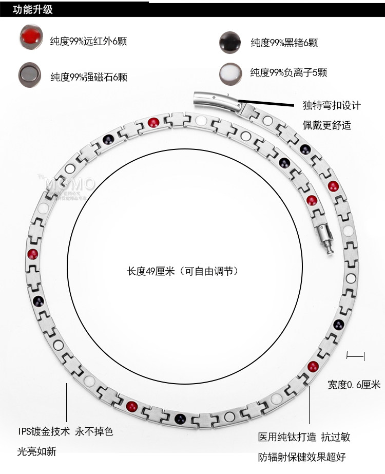 Японское золотое антирадиационное магнитное ожерелье из нержавеющей стали, мужской стиль, не выцветает, розовое золото