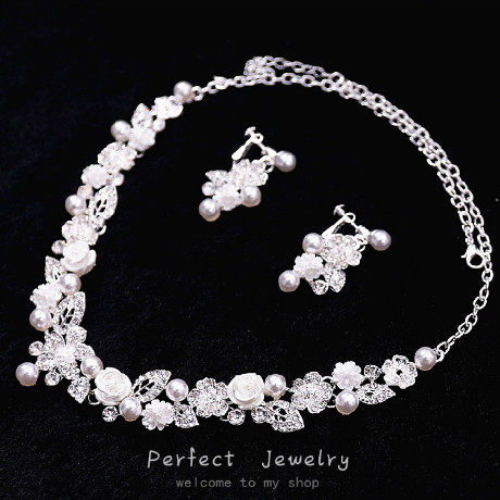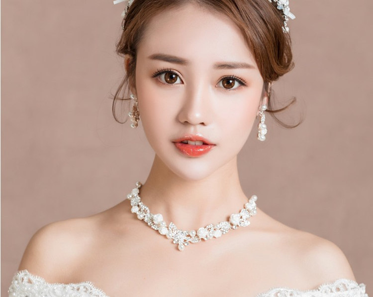 Ожерелье и серьги из жемчуга для невесты, корейский комплект, свадебное платье, аксессуар, 2 предмета, в корейском стиле, простой и элегантный дизайн