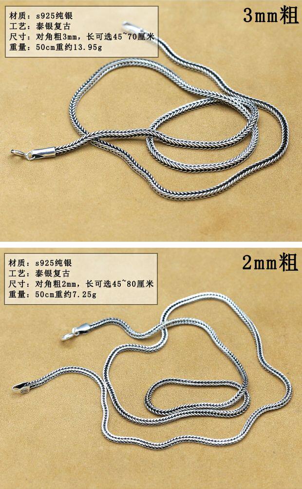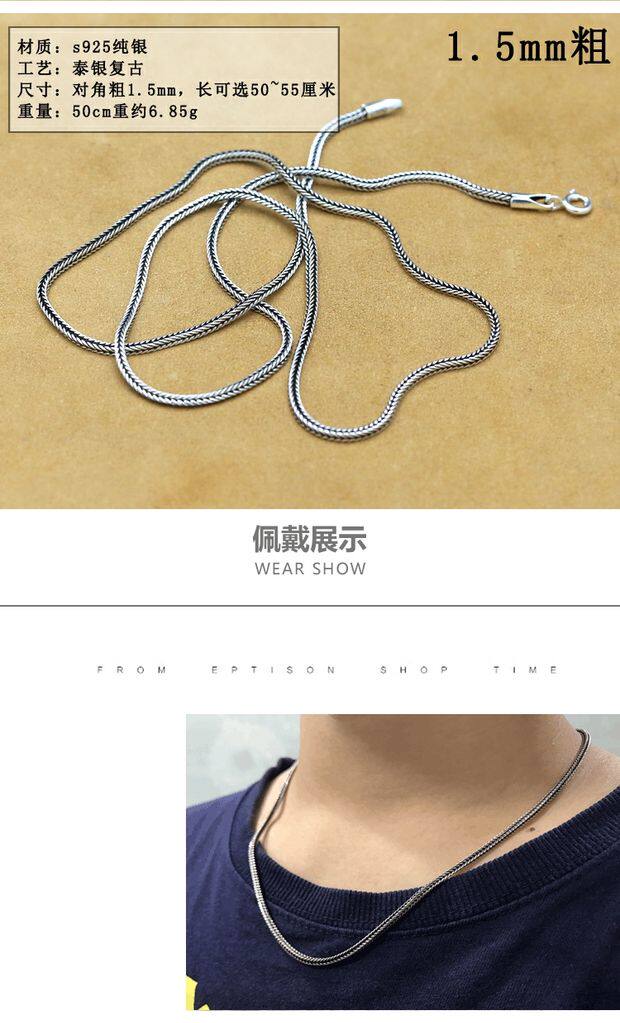 Аксессуар ручной работы, ретро универсальное ожерелье подходит для мужчин и женщин, серебро 925 пробы, Таиланд
