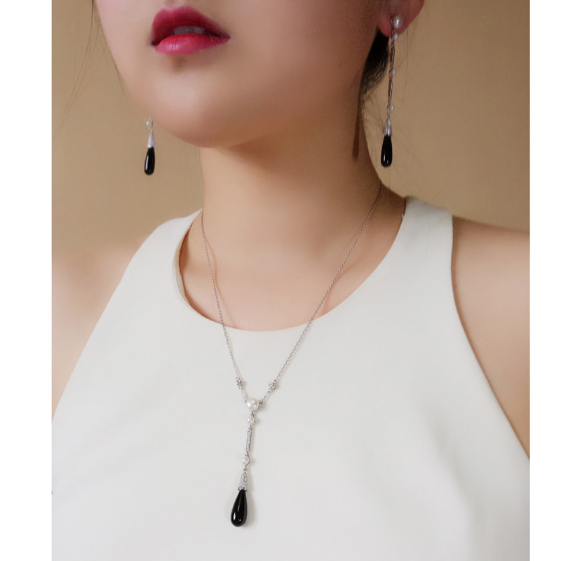 Шелковая пижама, классическое ювелирное украшение, агатовые серьги, ожерелье