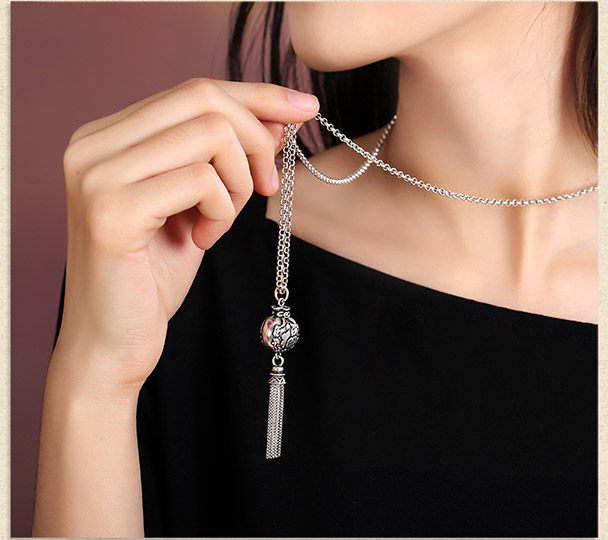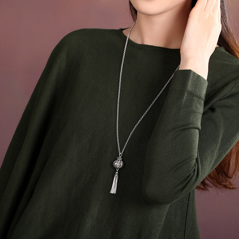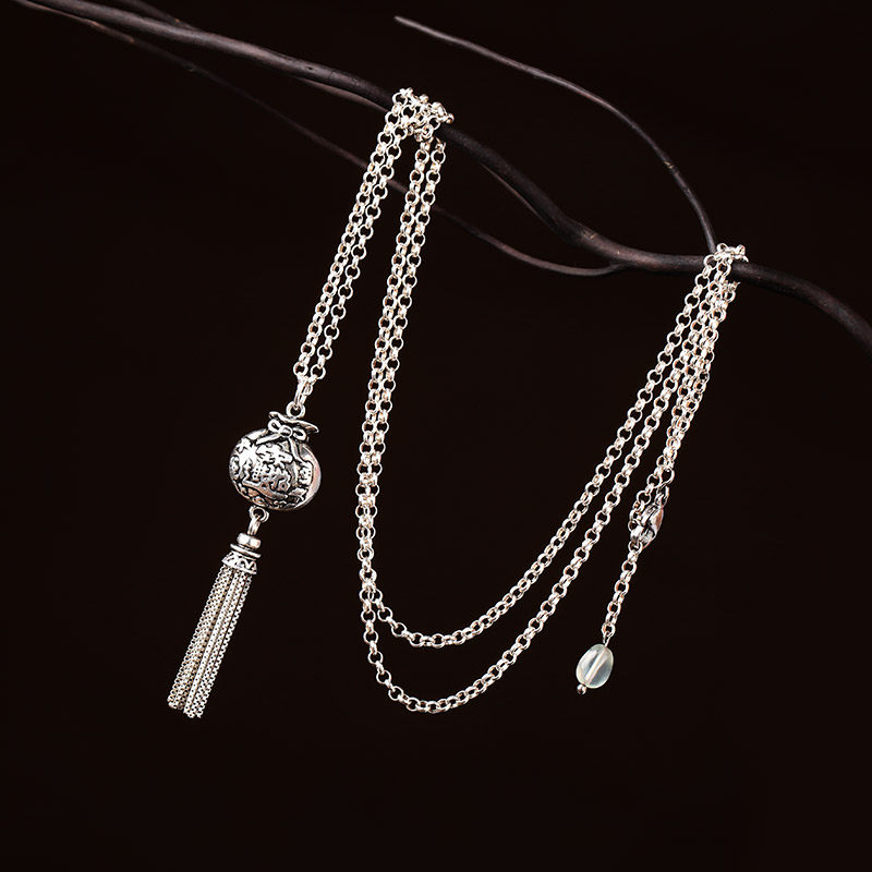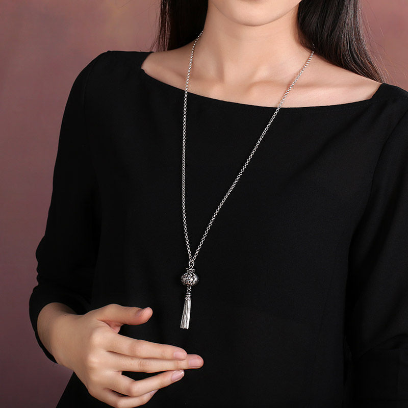 Длинное ожерелье, высококлассный изысканный этнический ретро свитер, аксессуары, серебро 925 пробы, серебро 925 пробы, этнический стиль