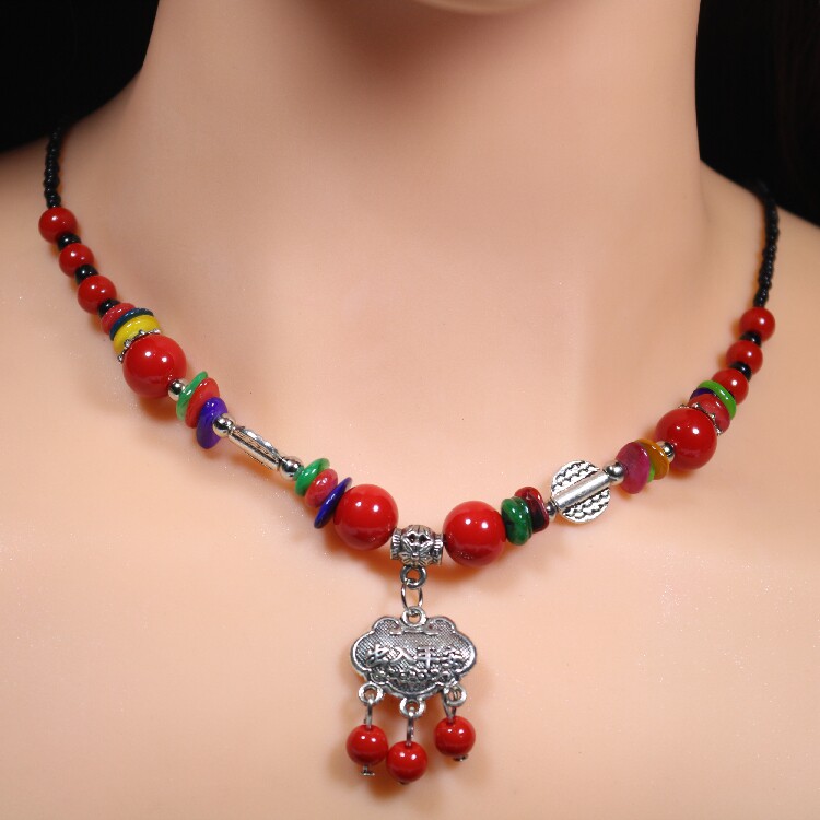 Этническое ожерелье из провинции Юньнань, аксессуар для волос, ретро красная подвеска, этнический стиль