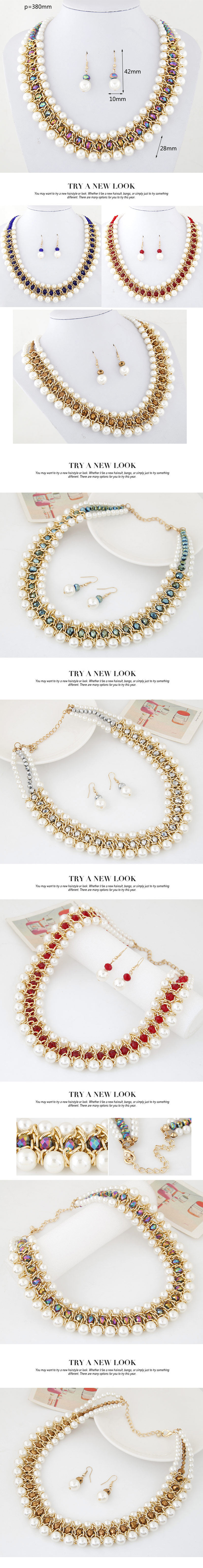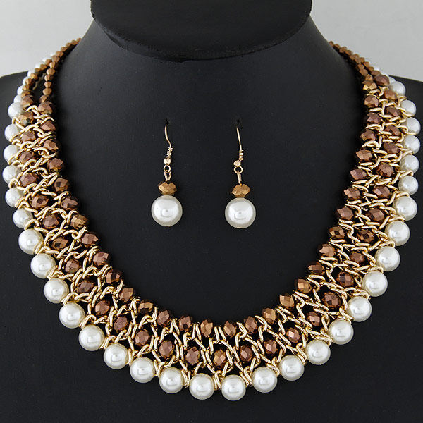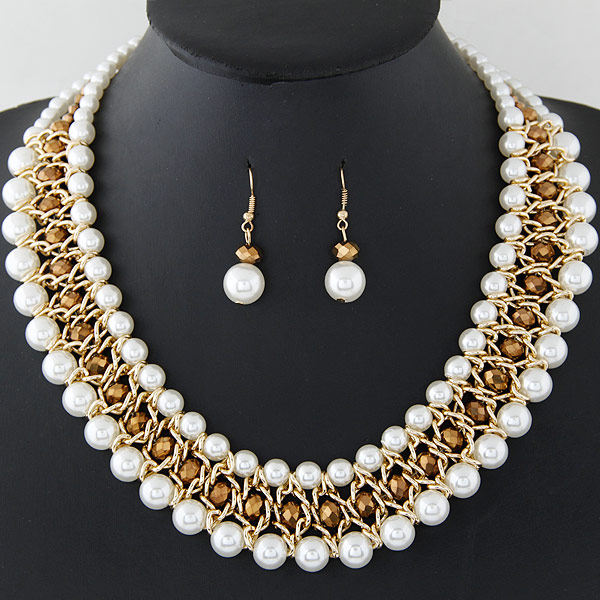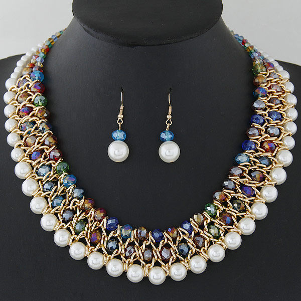 Модное металлическое универсальное ожерелье и серьги из жемчуга, комплект, европейский стиль, яркий броский стиль