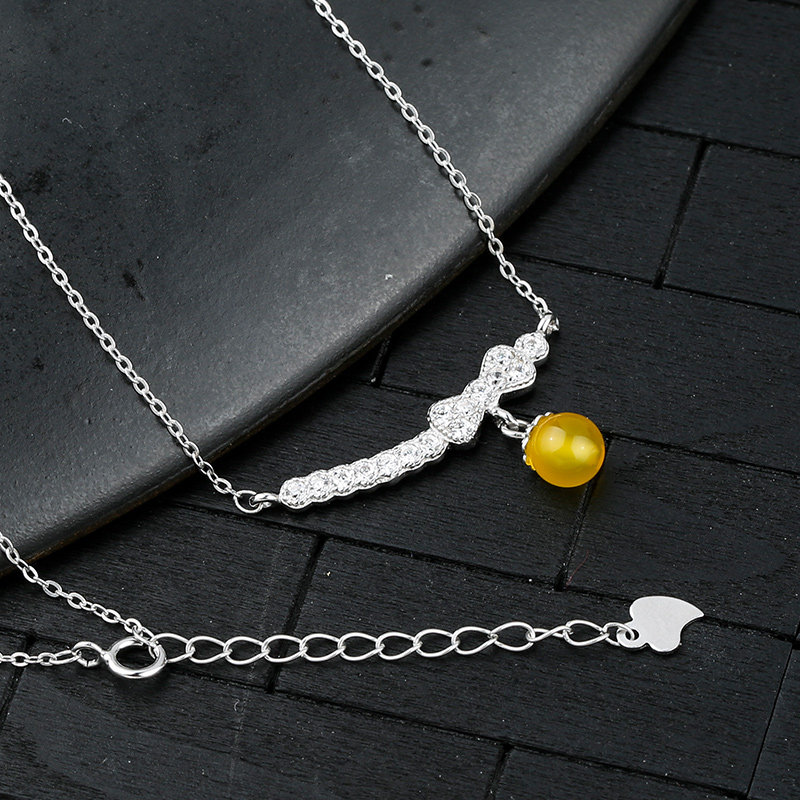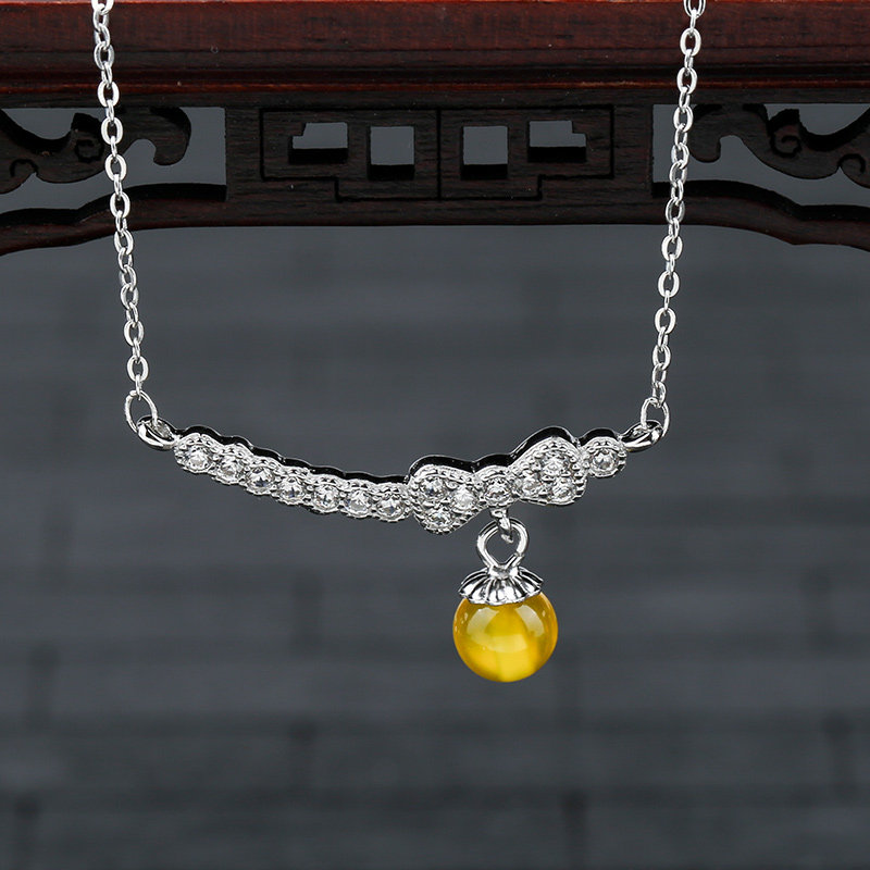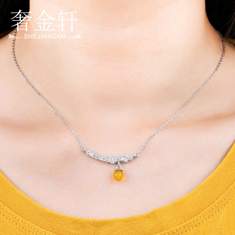 Цепочка, ожерелье, подвеска, янтарная инкрустация камня из воскового агата, серебро 925 пробы, в корейском стиле