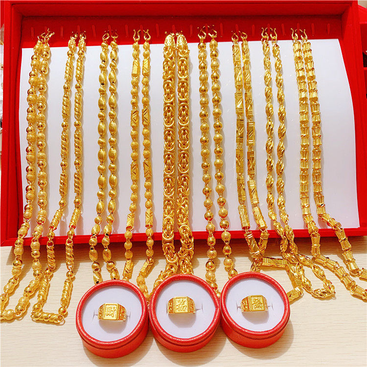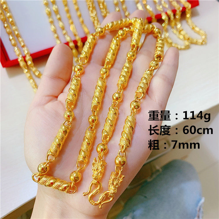 Вьетнамское золотое ожерелье с россыпями, мужское золотое ожерелье, не выцветает в течение длительного времени, мужское золотое ожерелье с полым шестиугольником из бамбука