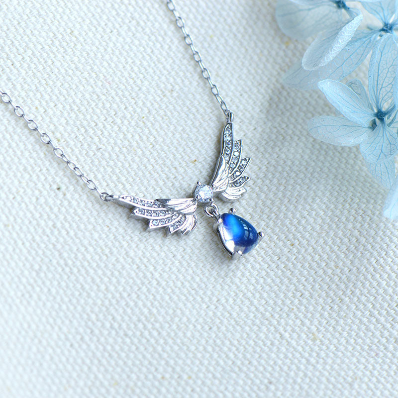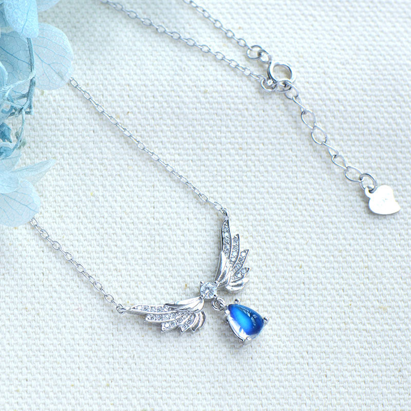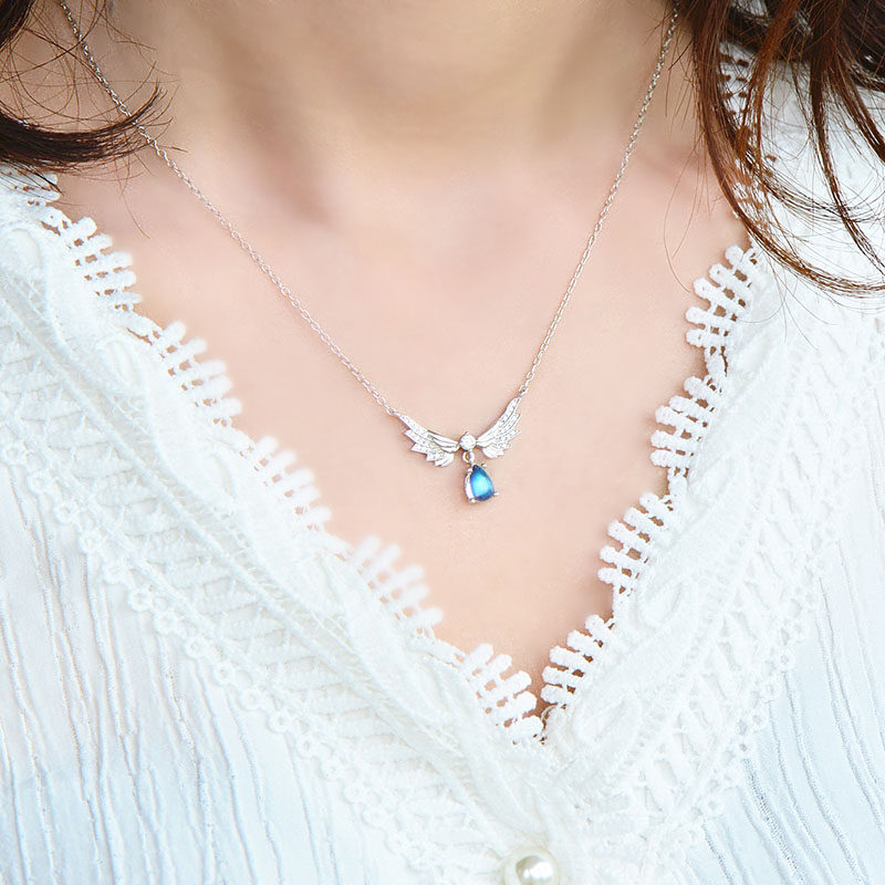 Подвеска, натуральная цепочка до ключиц, ожерелье, лунный камень, имитация льда, серебро 925 пробы, простой и элегантный дизайн
