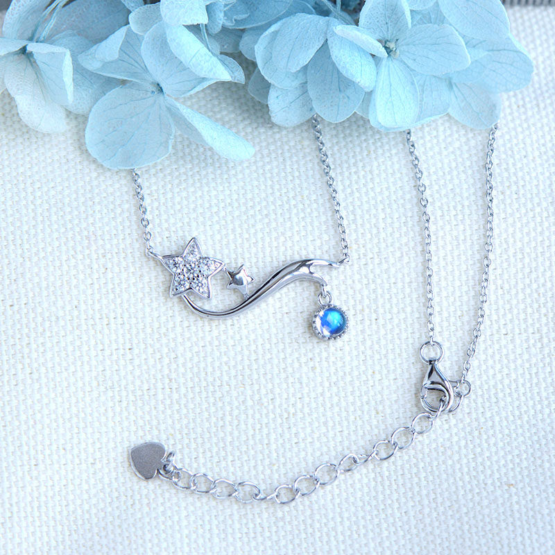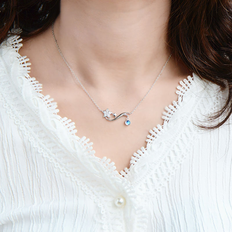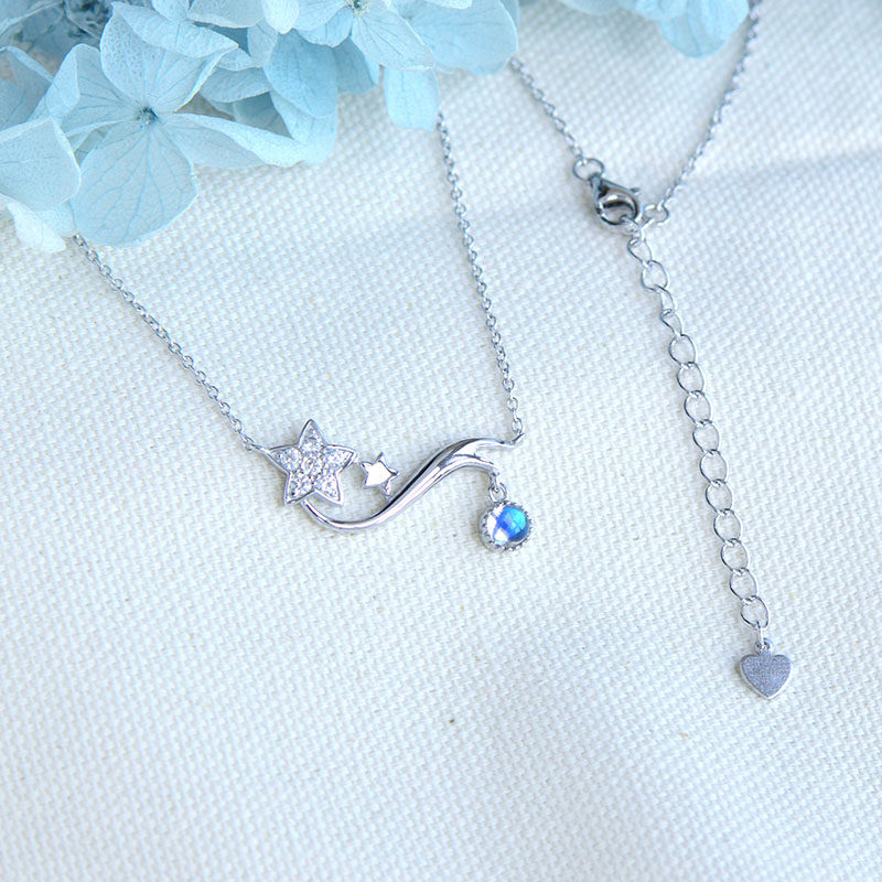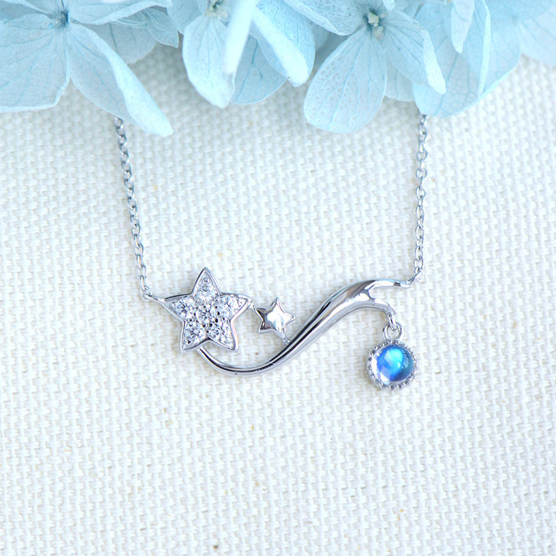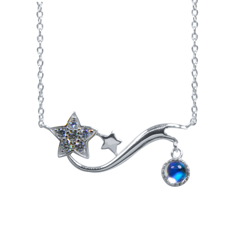 Подвеска, натуральная цепочка до ключиц, ожерелье, лунный камень, имитация льда, серебро 925 пробы, простой и элегантный дизайн