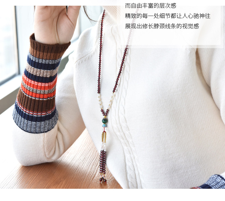 Оригинальный длинный демисезонный свитер из граната, универсальное ретро ожерелье малахит, подвеска из кварца, 2020