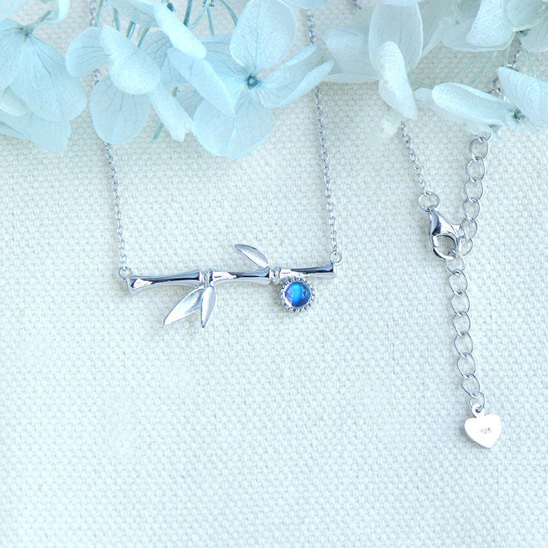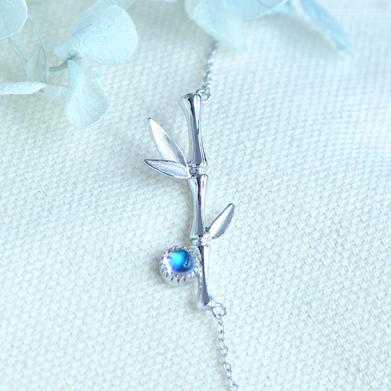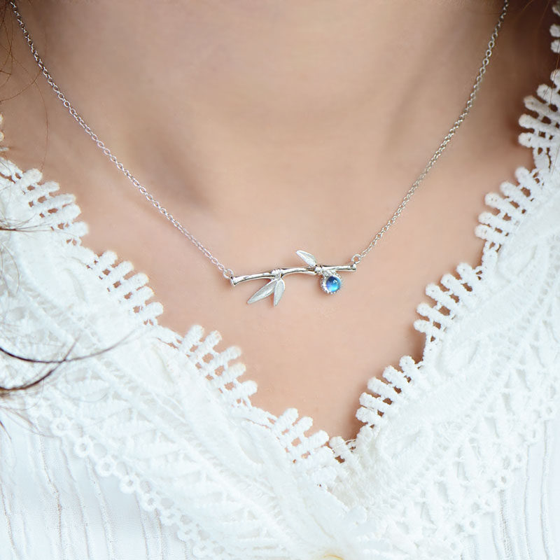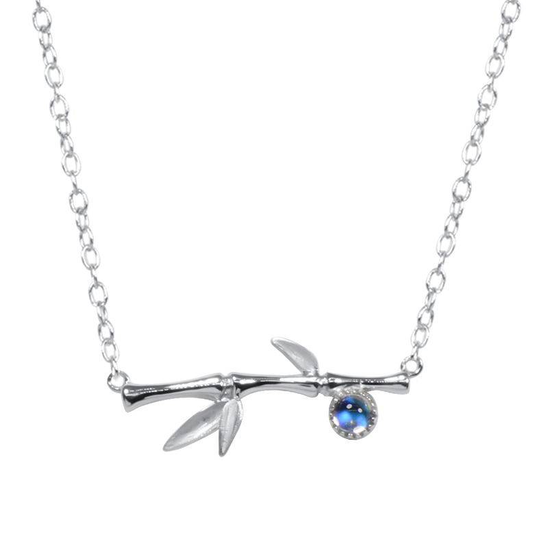 Бамбуковая подвеска, натуральная цепочка до ключиц, небольшое дизайнерское ожерелье, лунный камень, серебро 925 пробы