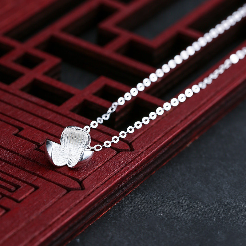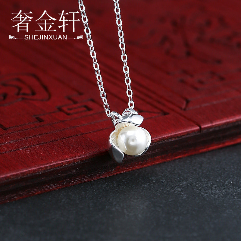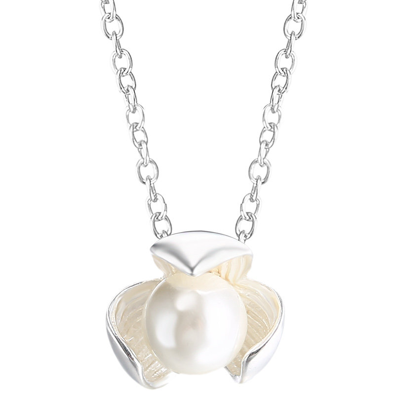 Цепочка из жемчуга, аксессуар, дизайнерская инкрустация камня, подвеска из воскового агата, серебро 925 пробы, в цветочек, японские и корейские
