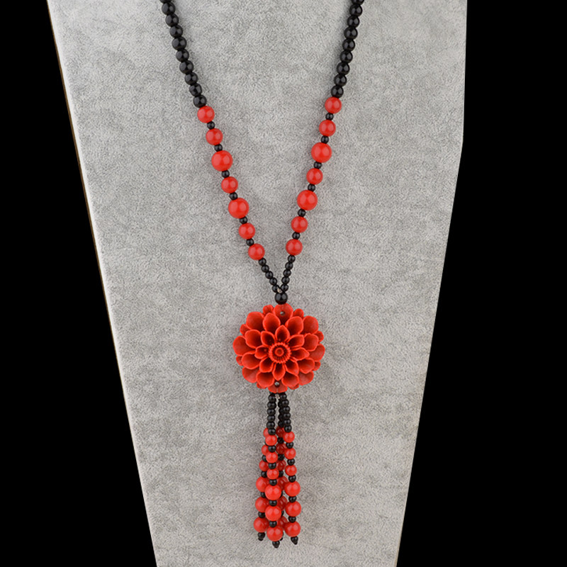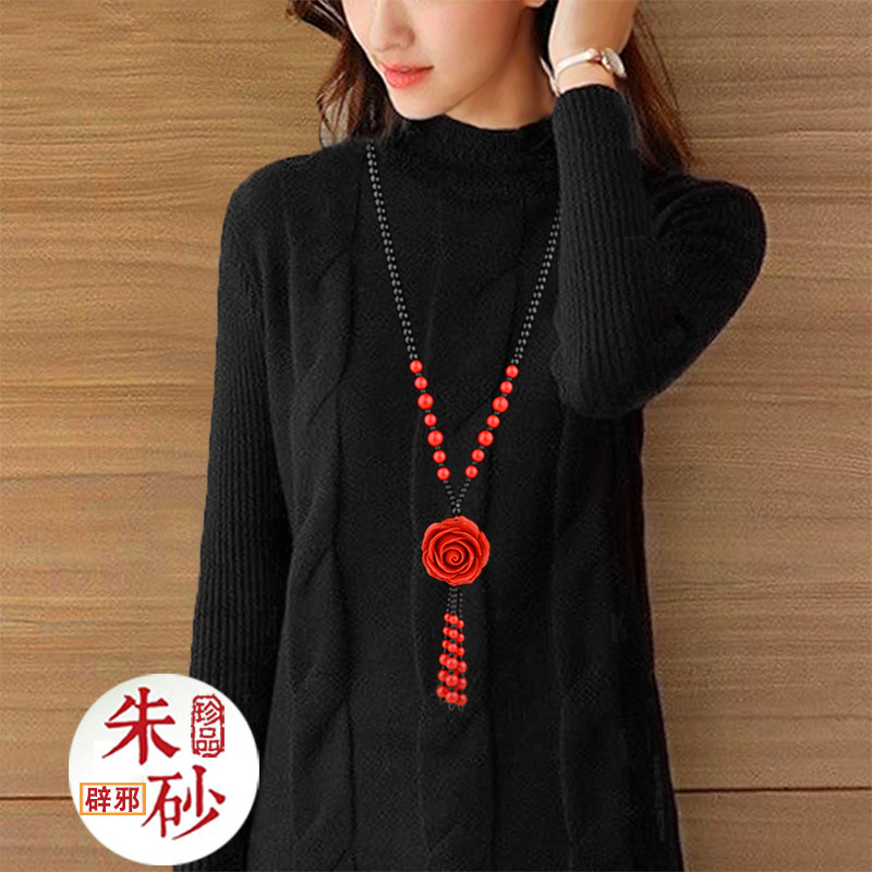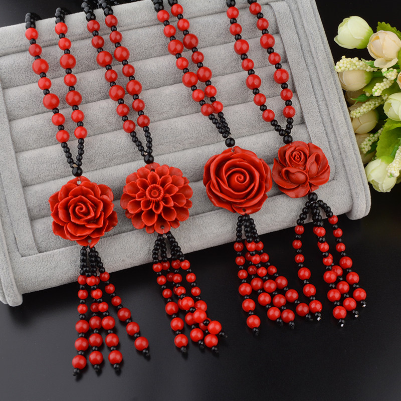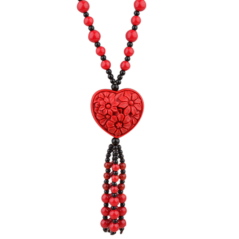 Ретро подвеска, этнический свитер, длинный аксессуар, универсальное ожерелье, цвета киновари, этнический стиль, простой и элегантный дизайн