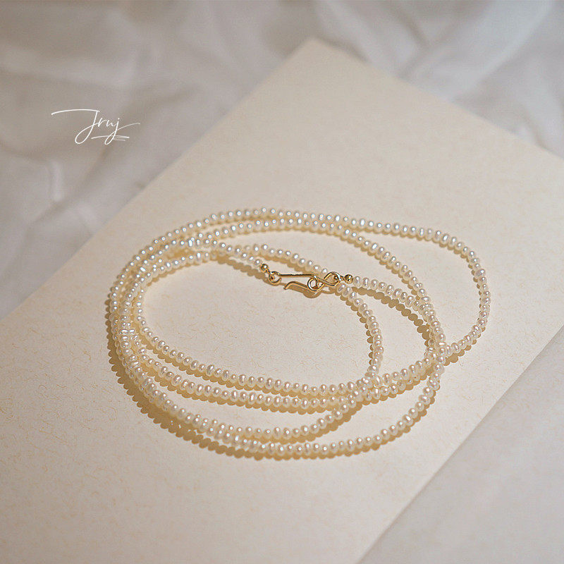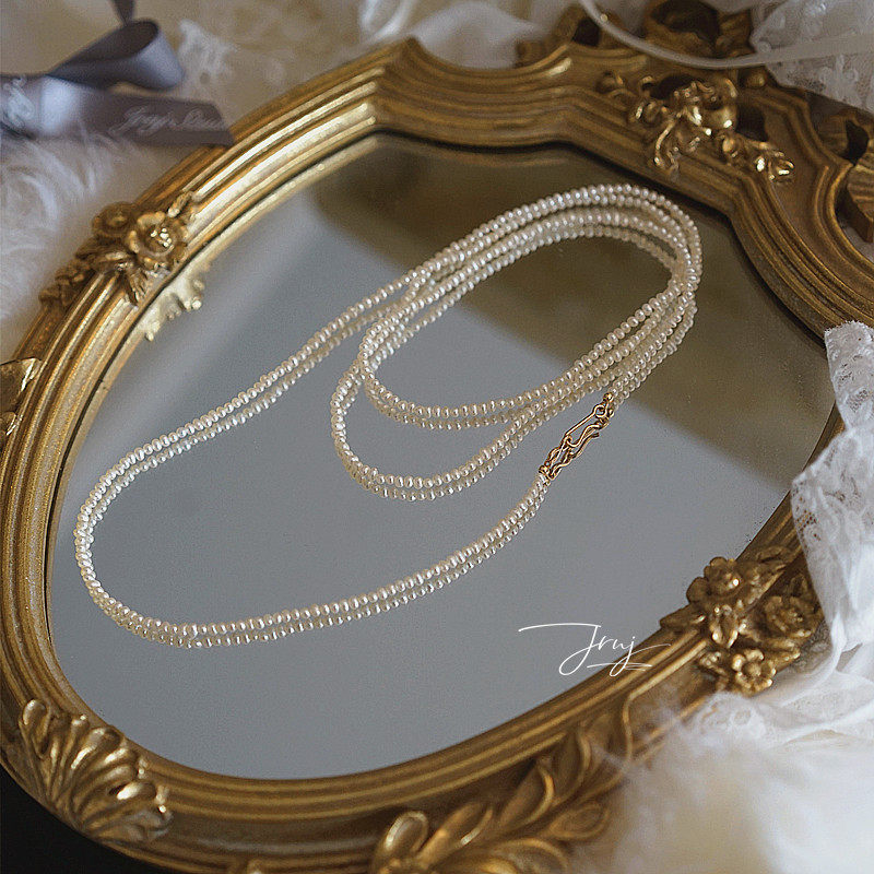 Ожерелье из жемчуга, ретро натуральная длинная цепочка до ключиц, яркий броский стиль, США, 14 карат