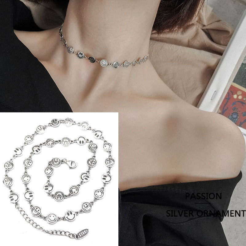 Ожерелье, южнокорейский короткий товар, ретро цепь, серебро 925 пробы