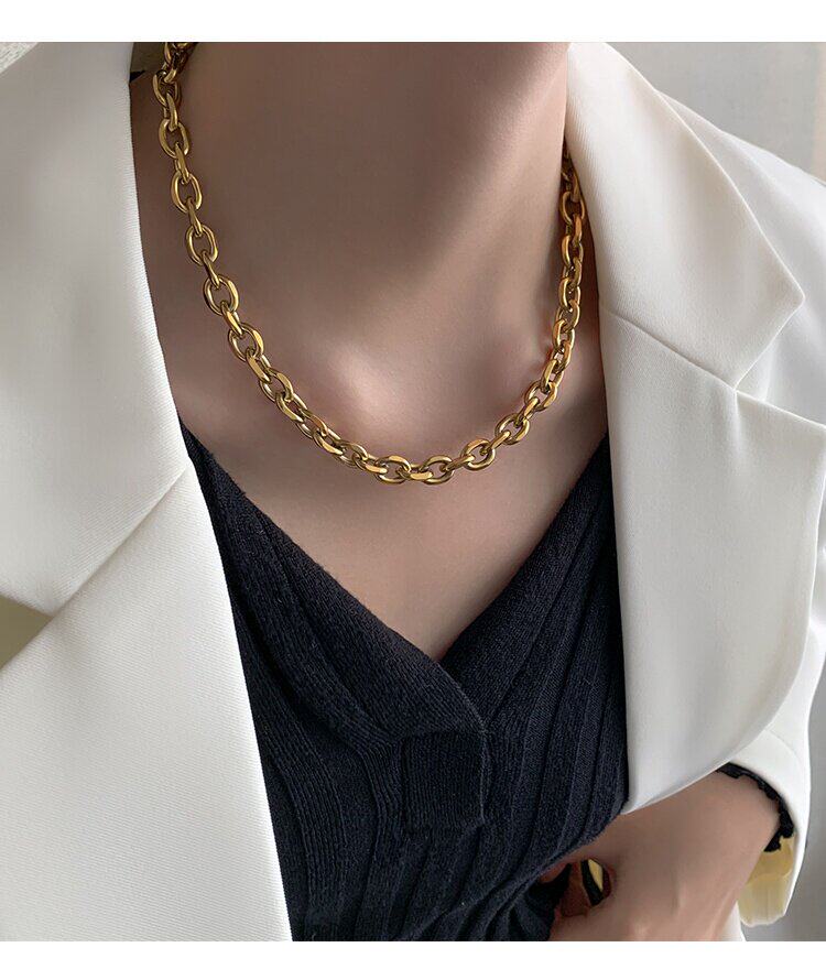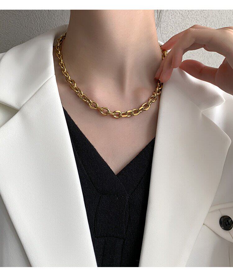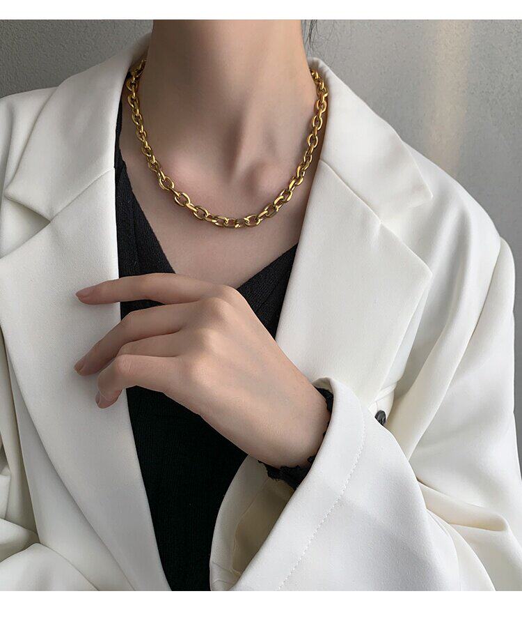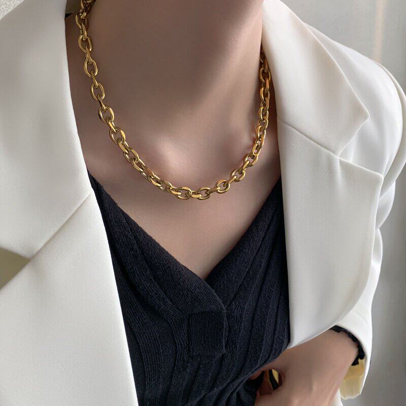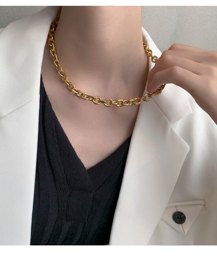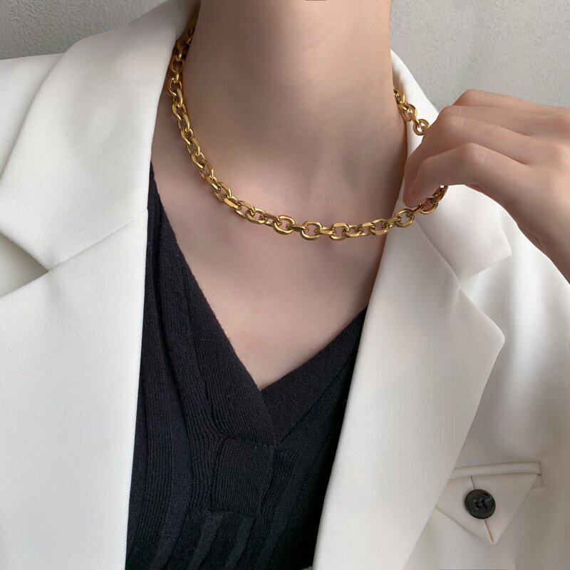 Цепочка, небольшое дизайнерское ожерелье из нержавеющей стали, изысканный стиль, 14 карат, европейский стиль, тренд сезона