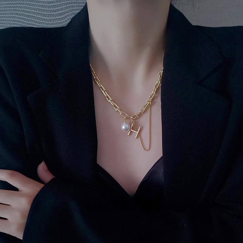 Небольшое дизайнерское ожерелье с буквами, цепь из жемчуга, цепочка до ключиц, европейский стиль, легкий роскошный стиль, тренд сезона, коллекция 2022