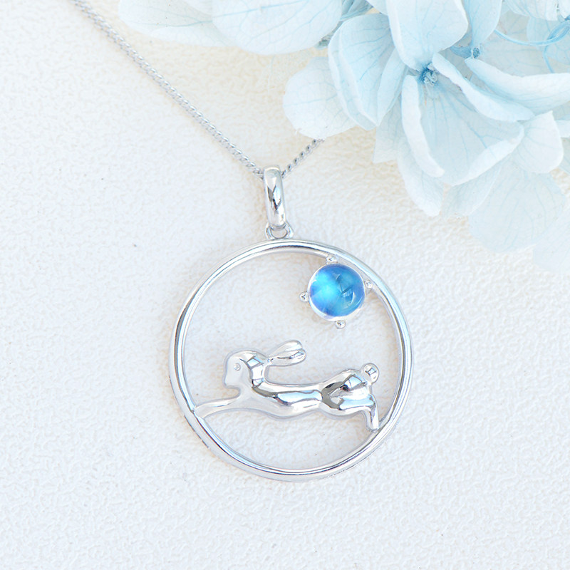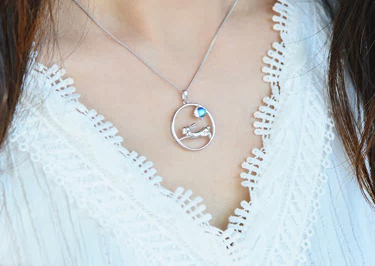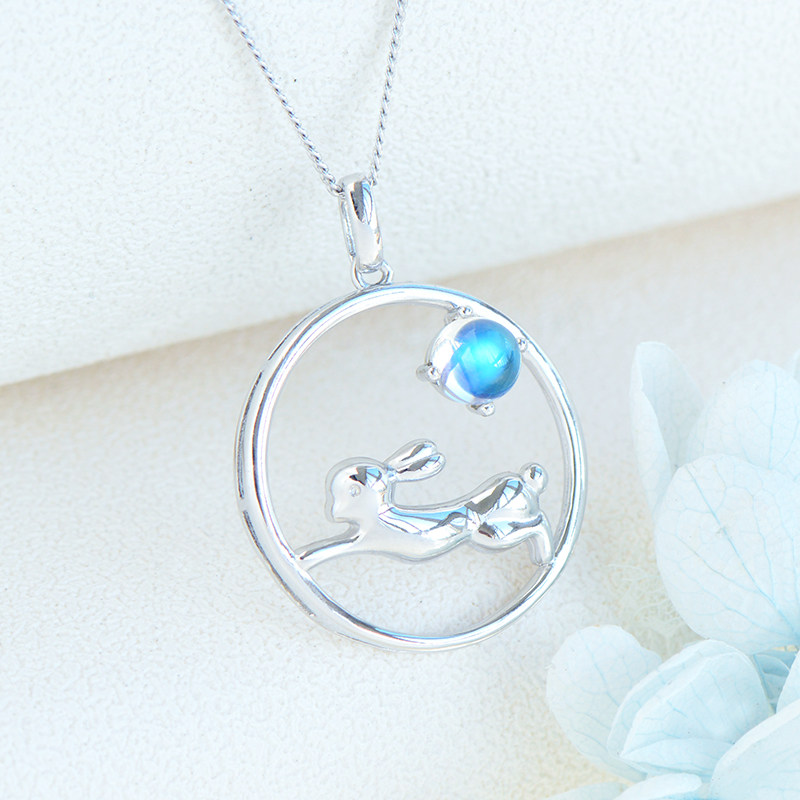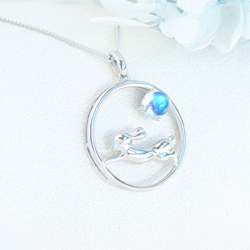 Кролик из нефрита, подвеска, очиститель для серебра, милое ожерелье из кварца, небольшая дизайнерская цепочка до ключиц, лунный камень, серебро 925 пробы, тренд сезона