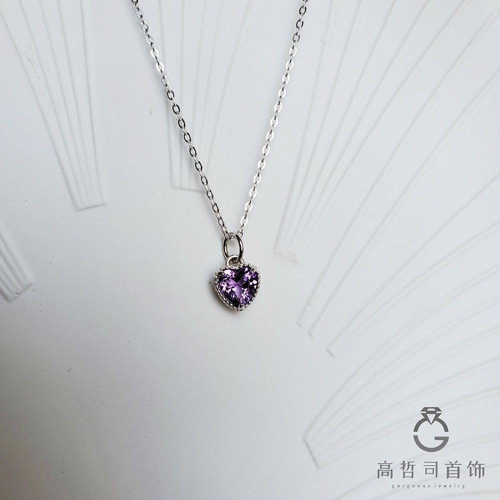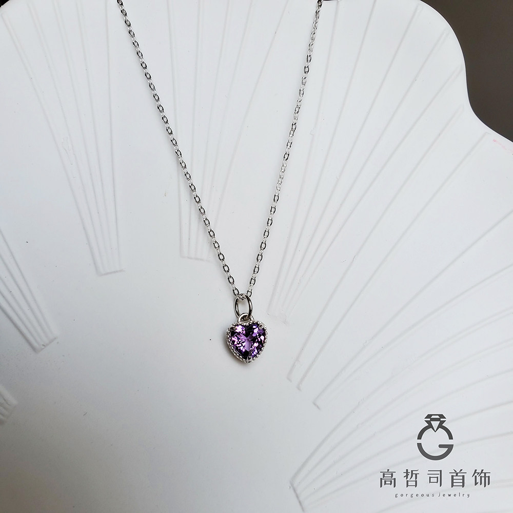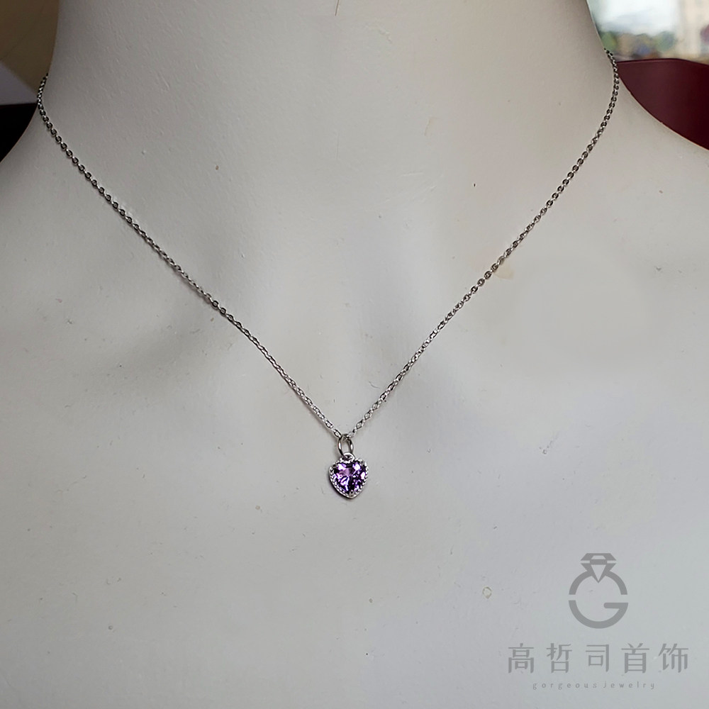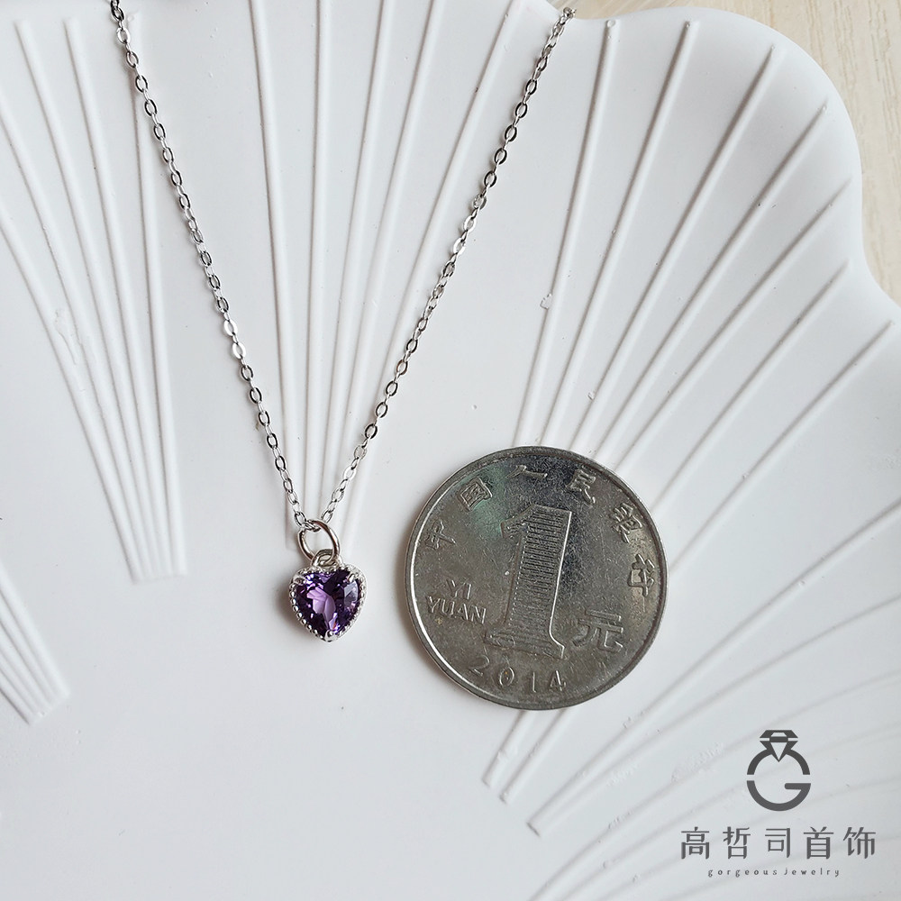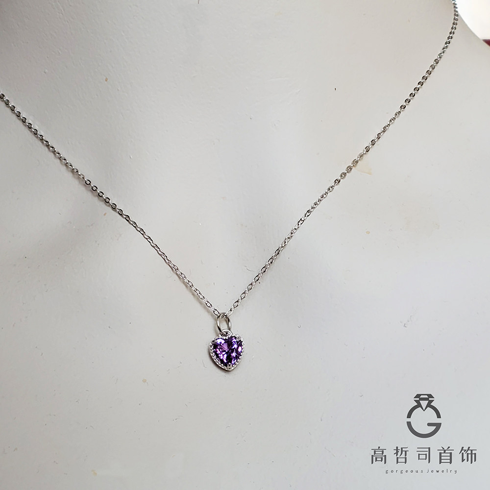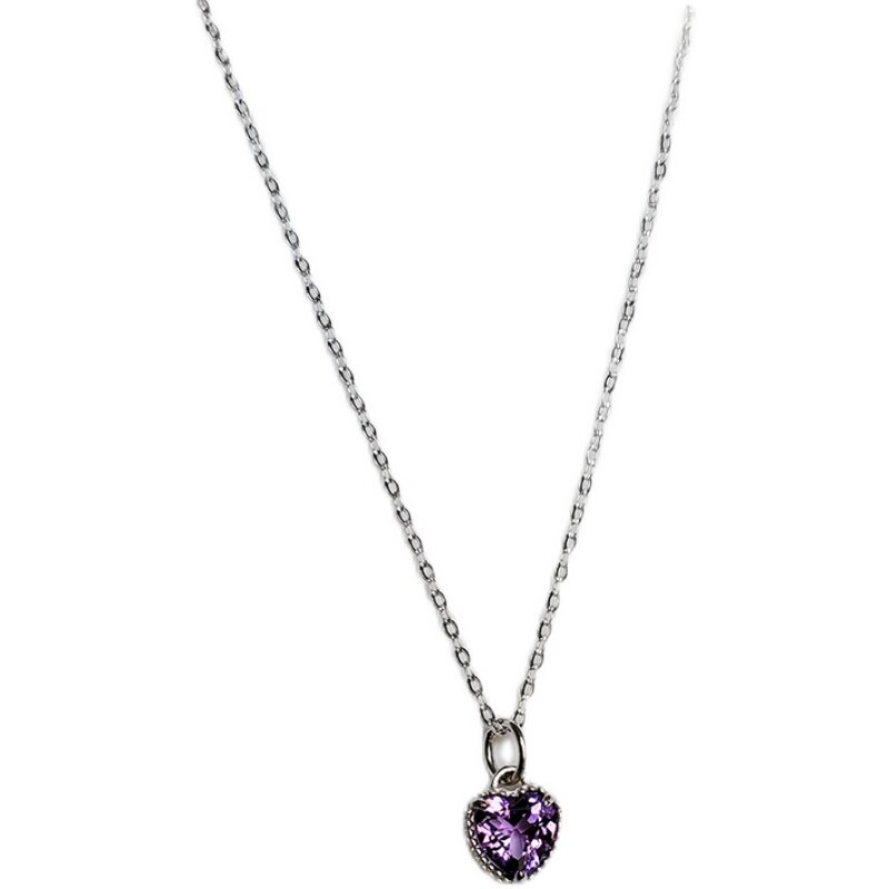 Натуральная подвеска в форме сердца с аметистом, цепочка до ключиц, ожерелье, серебро 925 пробы