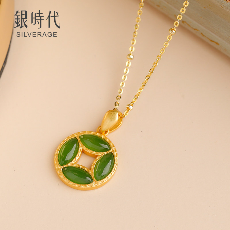 Медное ожерелье из нефрита, небольшая подвеска, свежая золотая цепочка до ключиц, серебро 925 пробы, легкий роскошный стиль