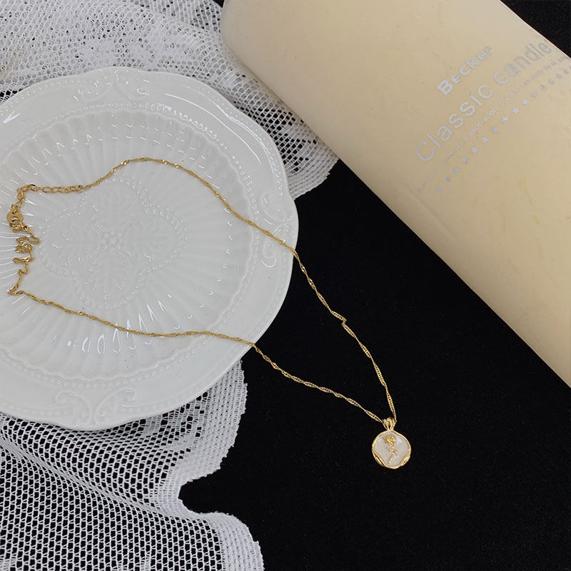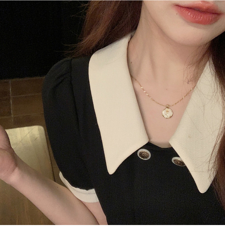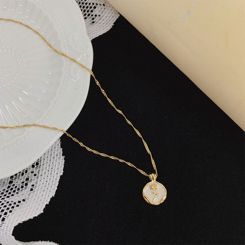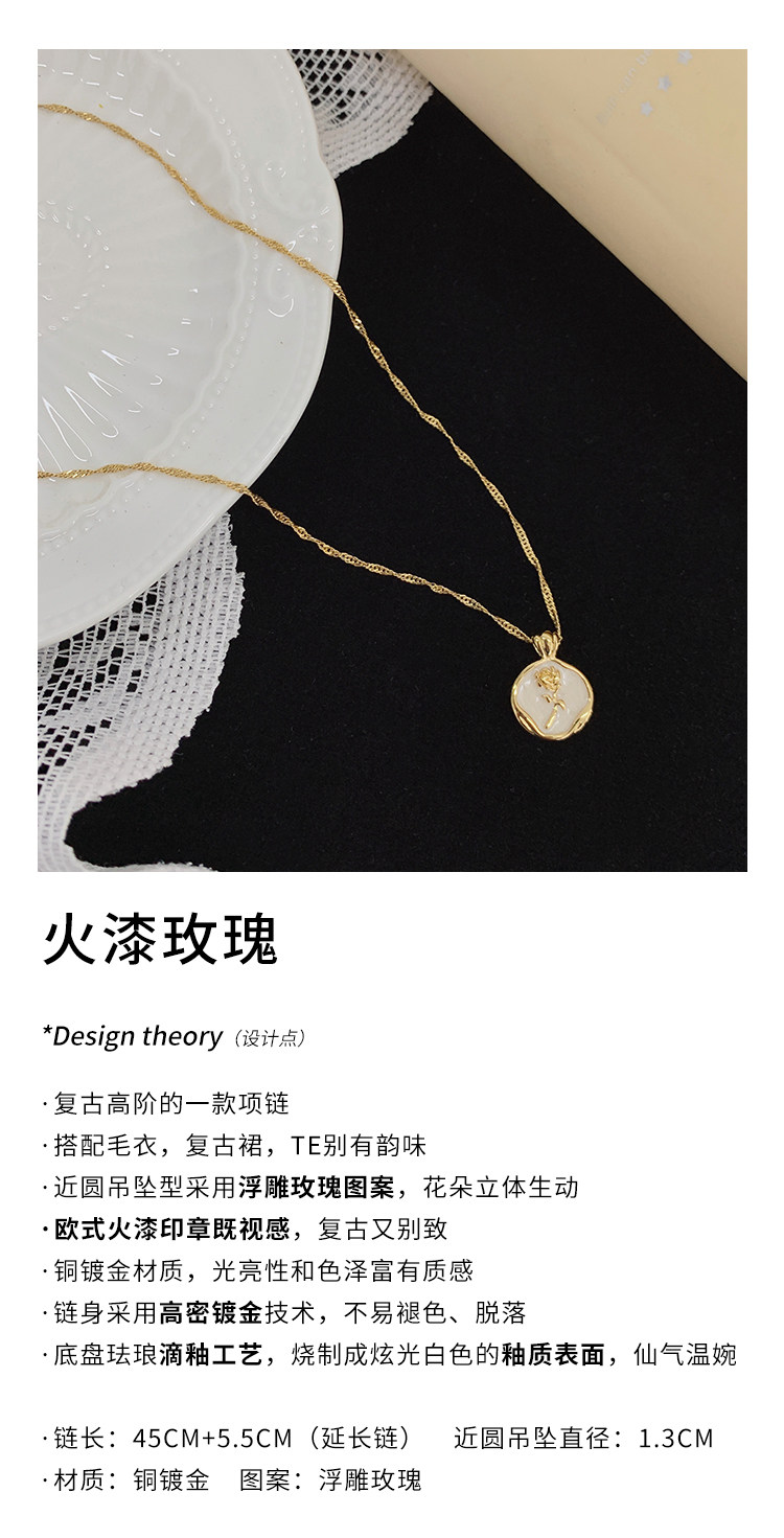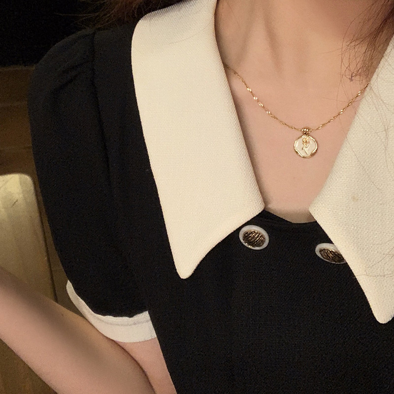 Ретро эмаль, ожерелье, золотая цепочка до ключиц, французский стиль, изысканный стиль