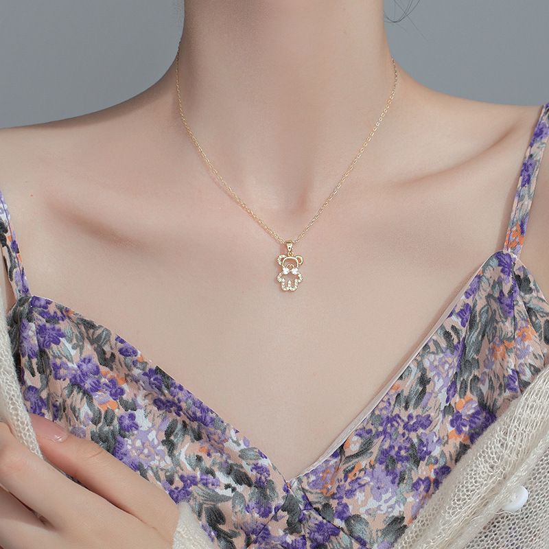 Небольшое ожерелье, дизайнерская универсальная цепочка до ключиц, с медвежатами, коллекция 2022, тренд сезона, не выцветает, простой и элегантный дизайн