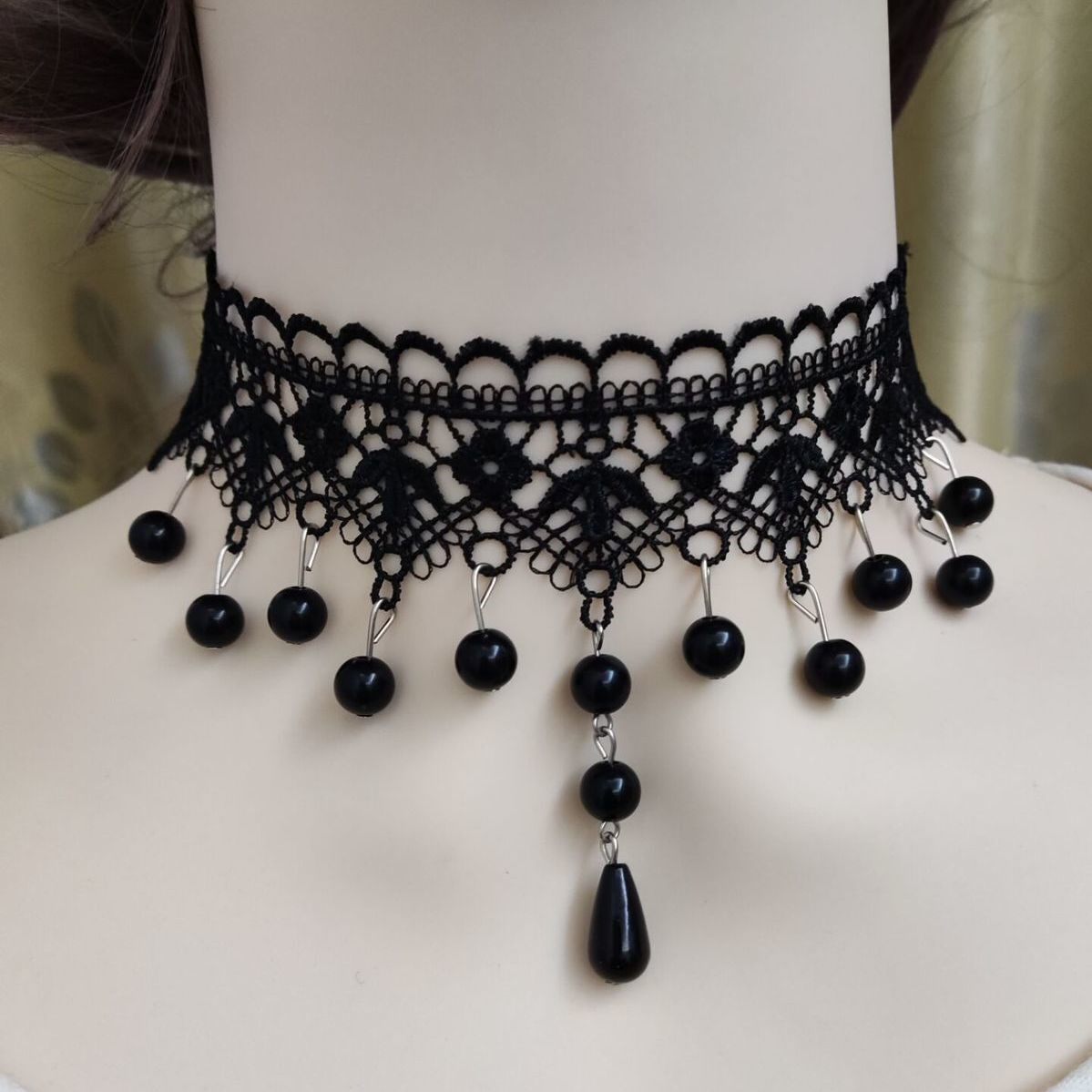 Черное ожерелье, цепочка до ключиц, чокер из жемчуга, послеоперационная подвеска, аксессуар