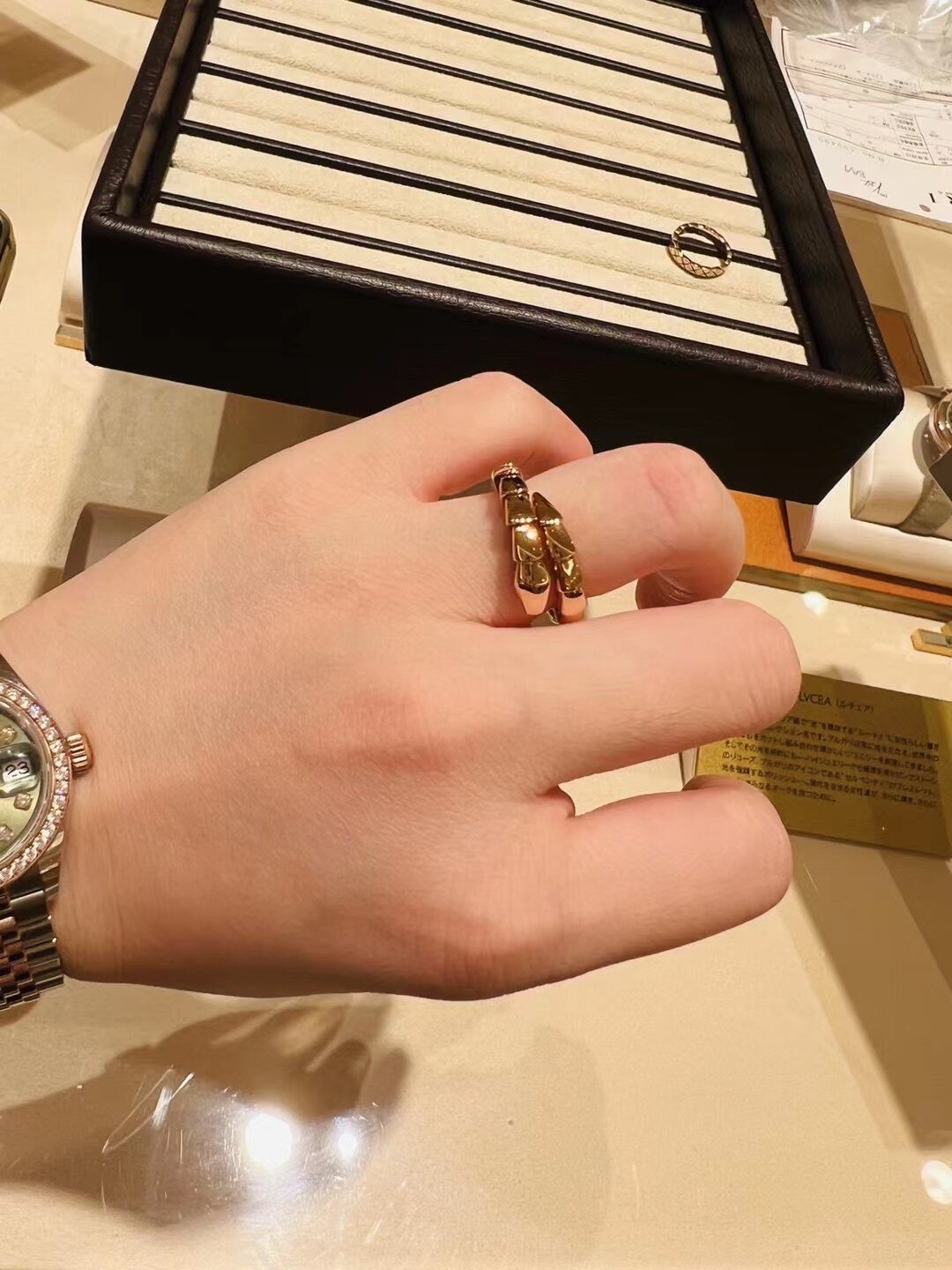 Япония приобретает прямую рассылку Bvlgari Belgari Serpenti Viper Snake -Caperved Ring Кольцо из розового золота