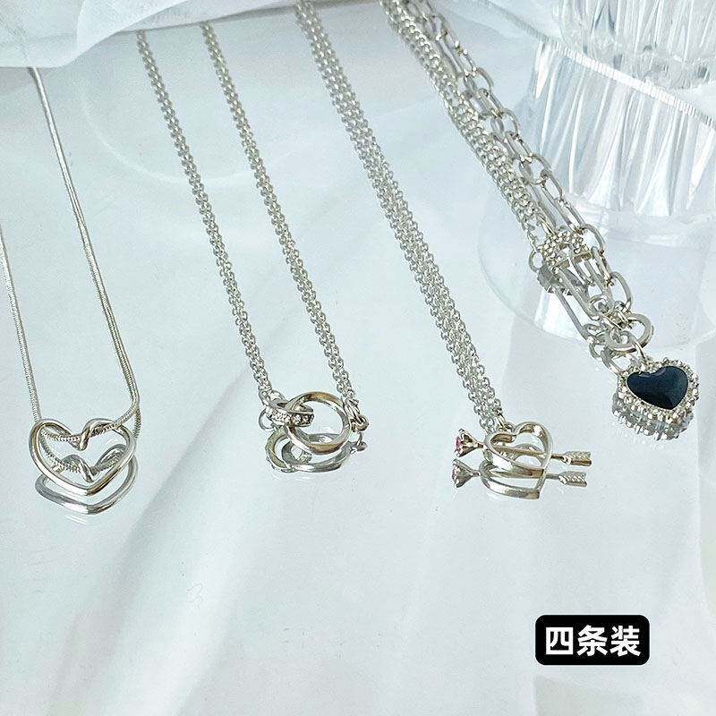 Брендовое ожерелье с цирконом, цепочка до ключиц, комплект, в корейском стиле, легкий роскошный стиль, 4 предмета