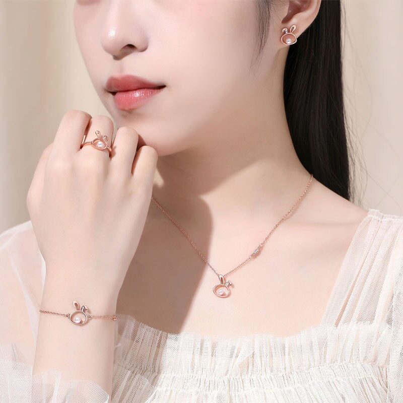 Кролик, браслет, кольцо, комплект, ожерелье, модная цепочка до ключиц, коллекция 2022, популярно в интернете
