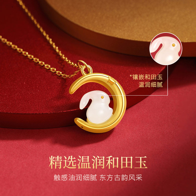 Кролик, ожерелье, оберег на день рождения, подвеска из нефрита, золото 750 пробы, год кролика, 2023, легкий роскошный стиль, серебро 925 пробы, подарок на день рождения
