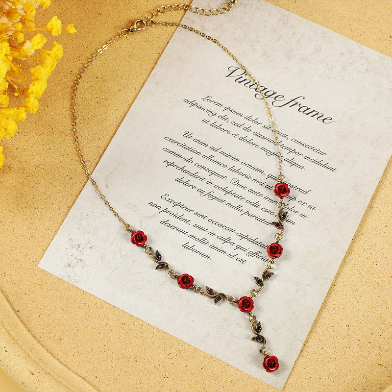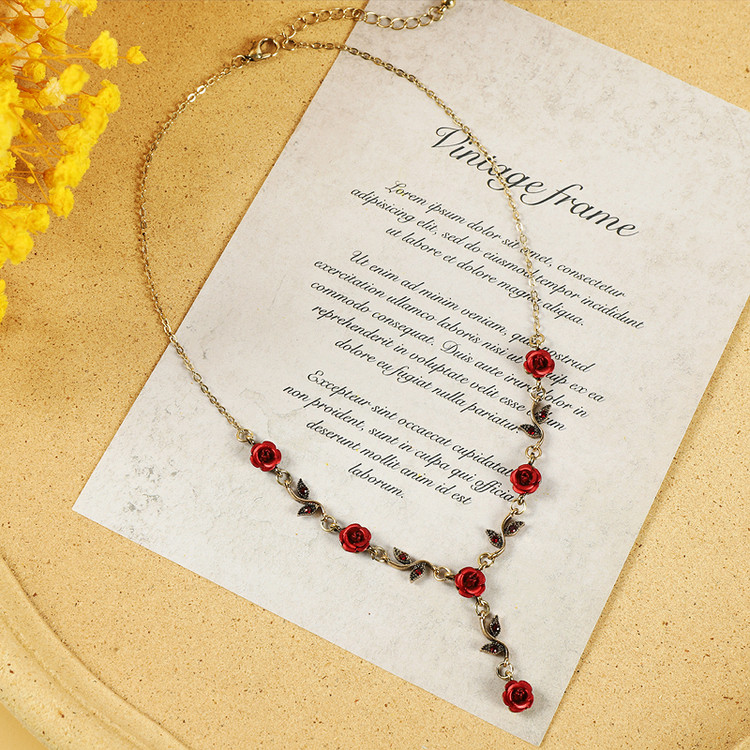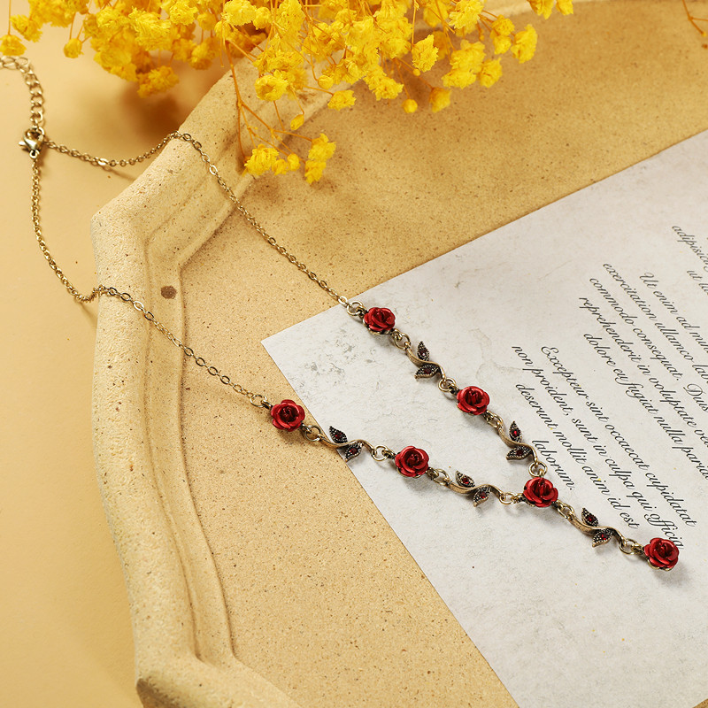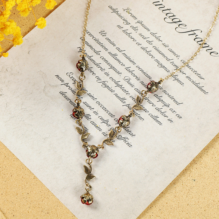 Ретро ожерелье, подвеска, цепочка до ключиц, браслет, европейский стиль, французский стиль, в стиле «Мори», в цветочек