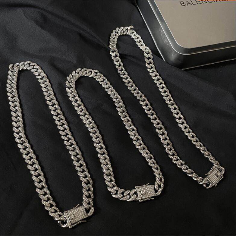 Кубинское ожерелье в форме бруска шириной 18 мм для мужчин, панк-рок, европейская и американская мода, модное металлическое ожерелье в стиле хип-хоп с бриллиантами