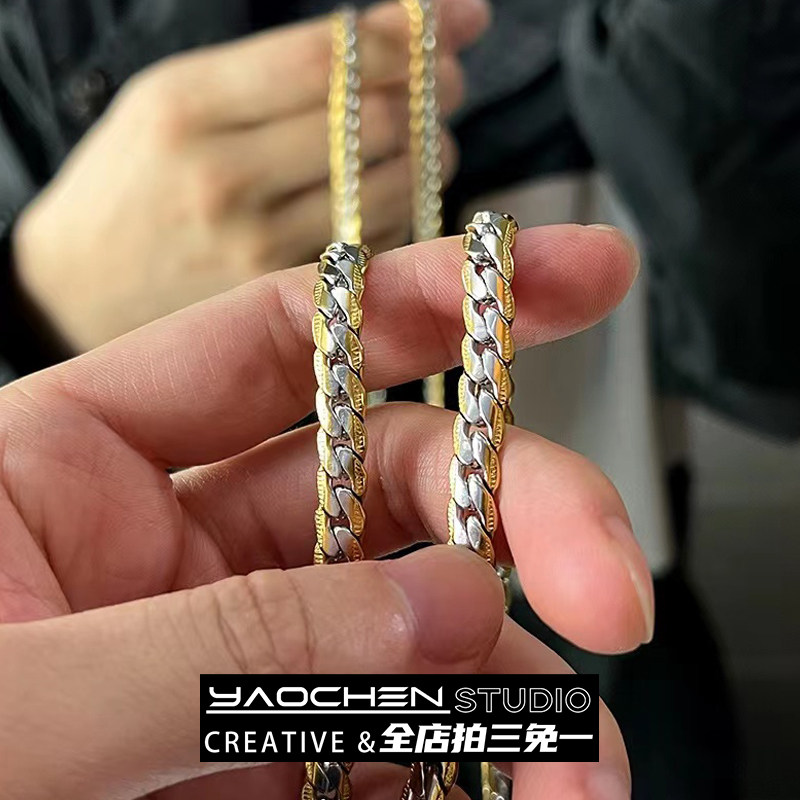 Тисненая кубинская мужская модная индивидуальная цепочка из змеиной кости в стиле хип-хоп, нишевый дизайн, золотое высококачественное ожерелье с темпераментом для пары