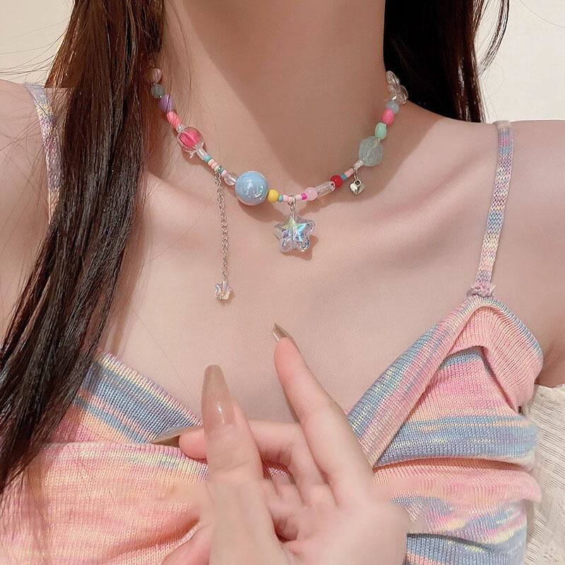 -Публикация-дофаминовое ожерелье ярких цветов, женское летнее новое ожерелье из бисера девичьего цвета, универсальная цепочка на ключицы