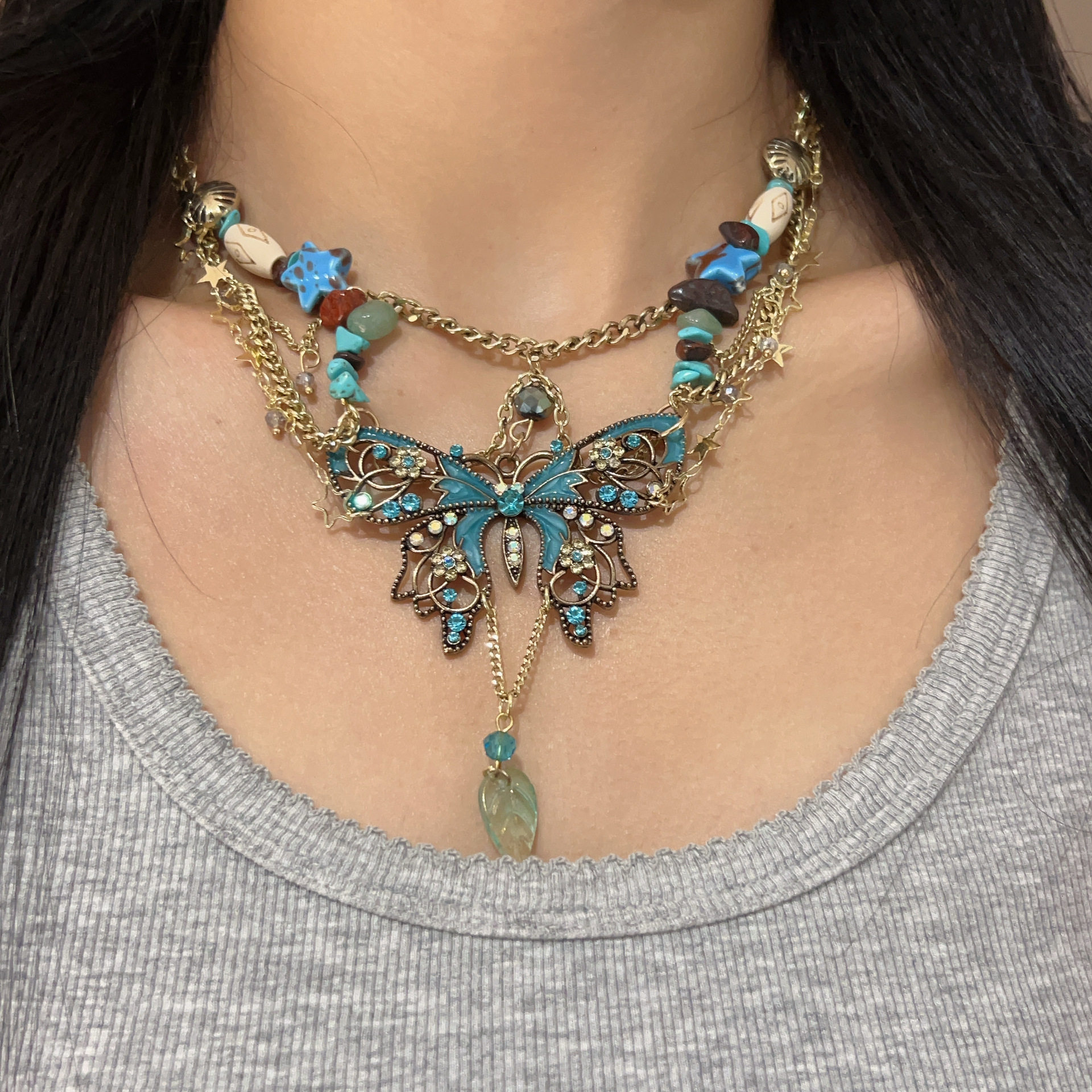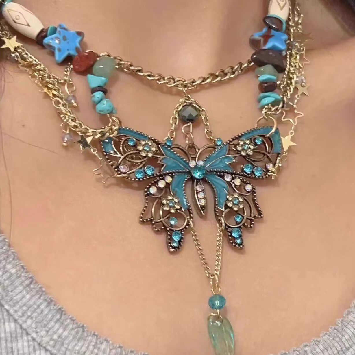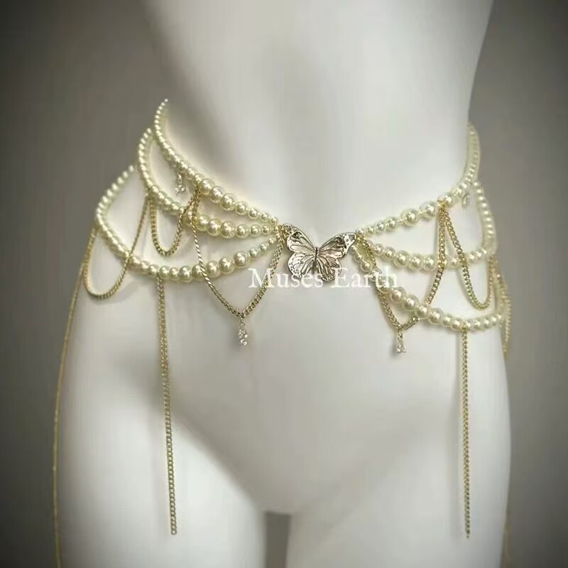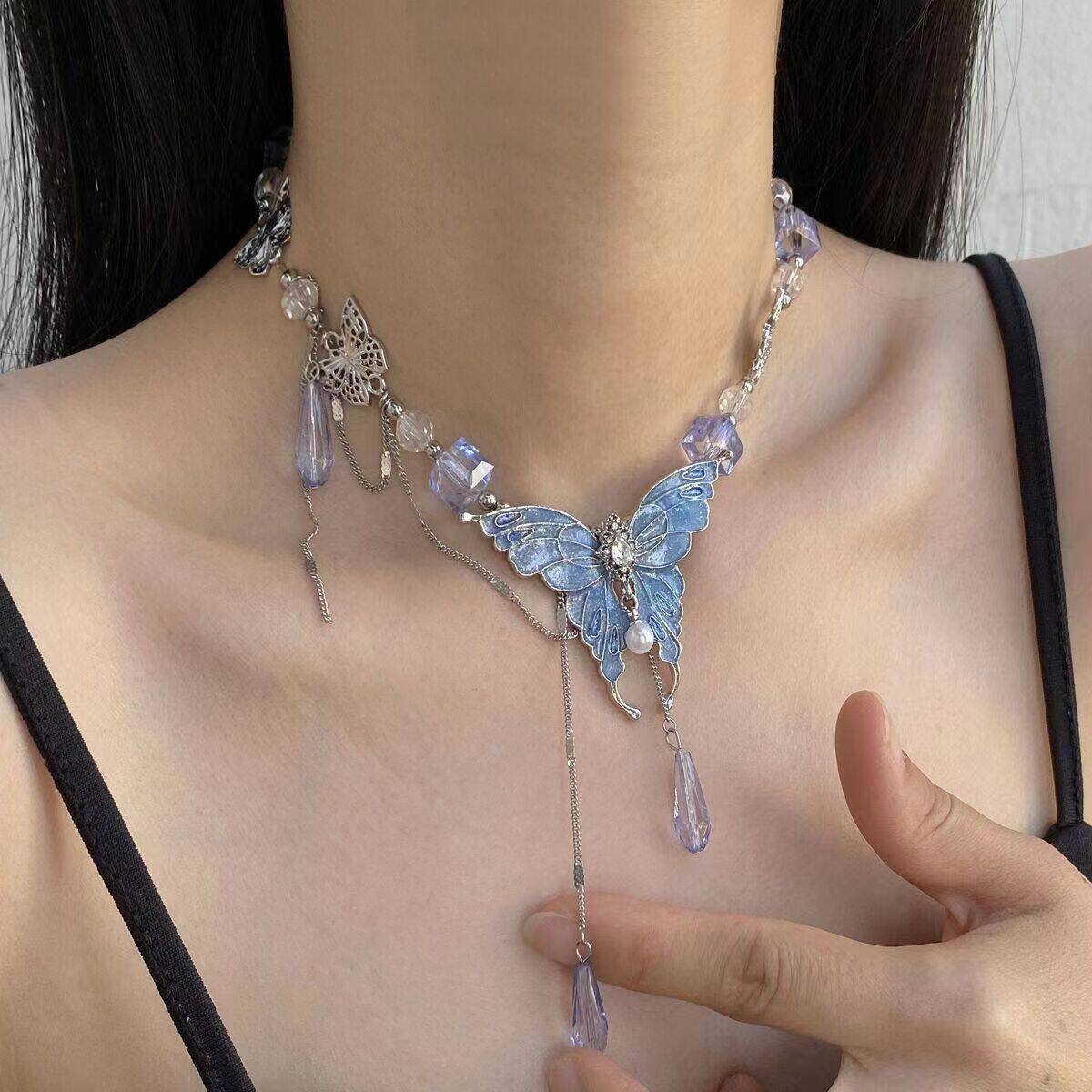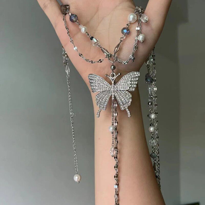 Многослойное ожерелье с кисточкой и жемчугом-бабочкой на шее, на талии, на ключице, милое и классное нишевое цельное ожерелье из двух частей для мужчин и женщин