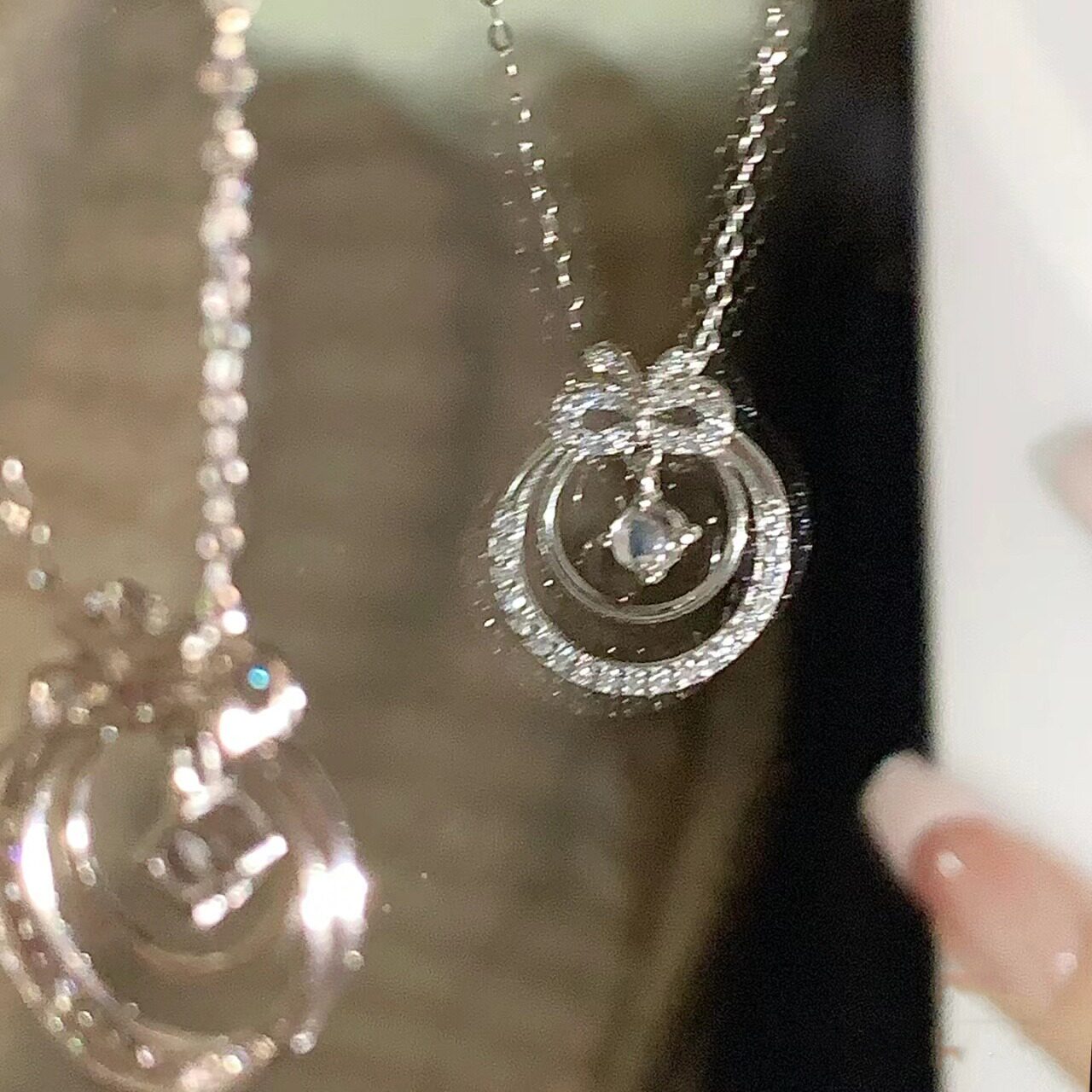- Изысканная цепочка до ключиц с бантиком с цирконом