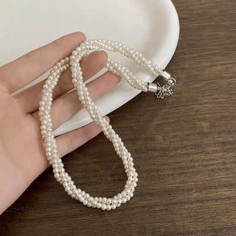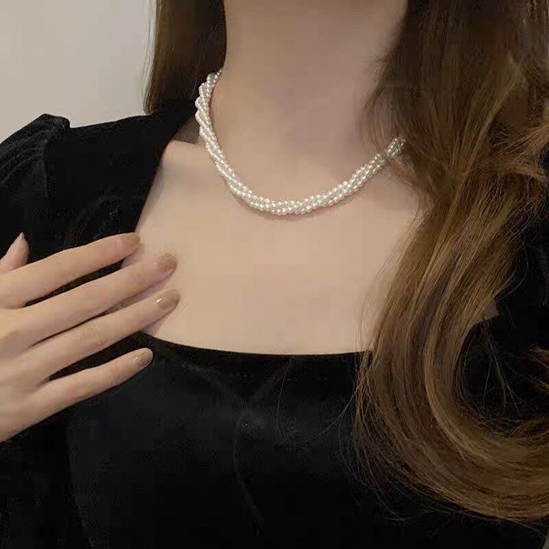 Ожерелье из трехслойного стеклянного жемчуга 𫔀Женское легкое роскошное нишевое ожерелье высокого класса с многослойным поворотным ожерельем на ключице ожерелье на шею лучшей девушки 𫔀