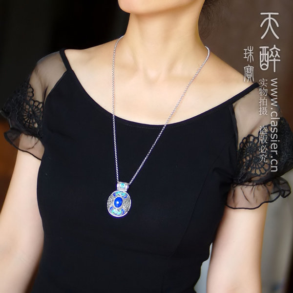 天醉 Натуральная инкрустация камня, ретро подвеска, дизайнерское ожерелье, серебро 925 пробы, тонкое плетение