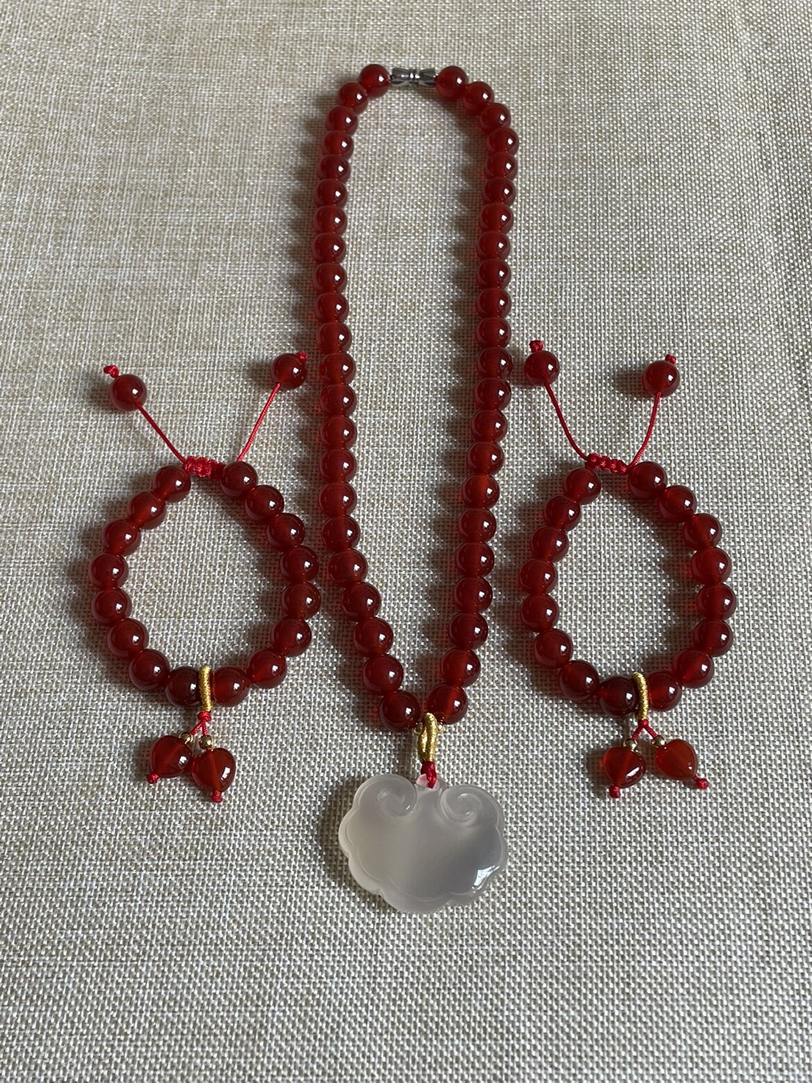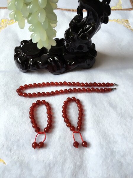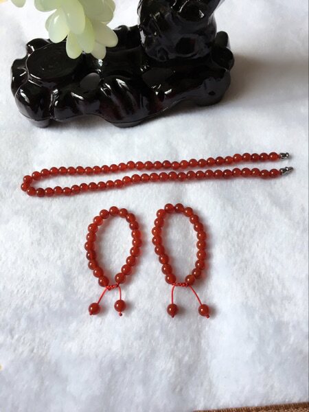 На фото колье из красного агата диаметром 8 мм и браслет диаметром 8 мм.