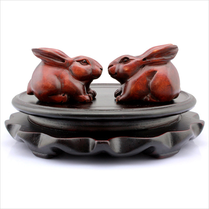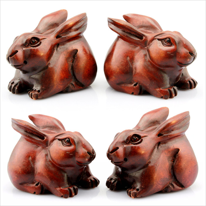 Трехмерный резной кролик из персикового дерева, резной кролик из дерева, деревянный кролик, благоприятный маленький орнамент из нефритового кролика