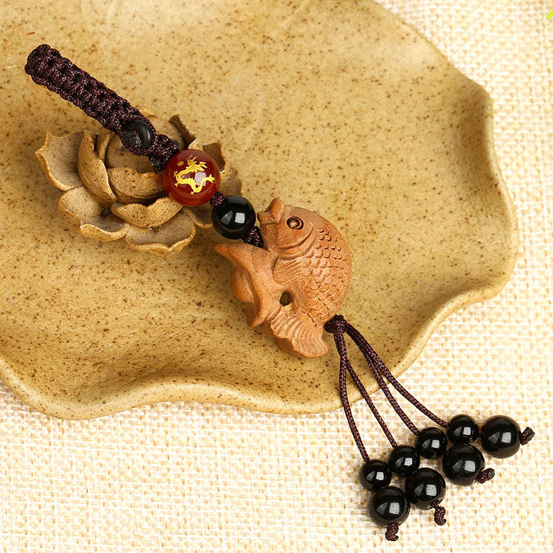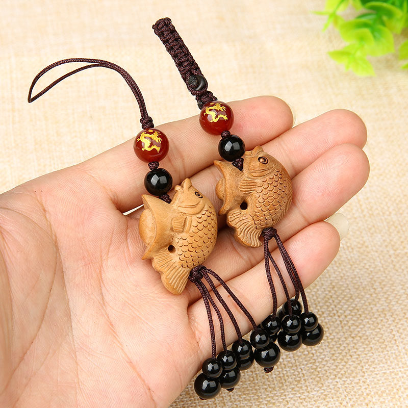 [Длинное перевозчик город Бао] Персиковая деревянная рыба -карп -кулон кулона для брелок с твердым древесином более чем год -лечеб