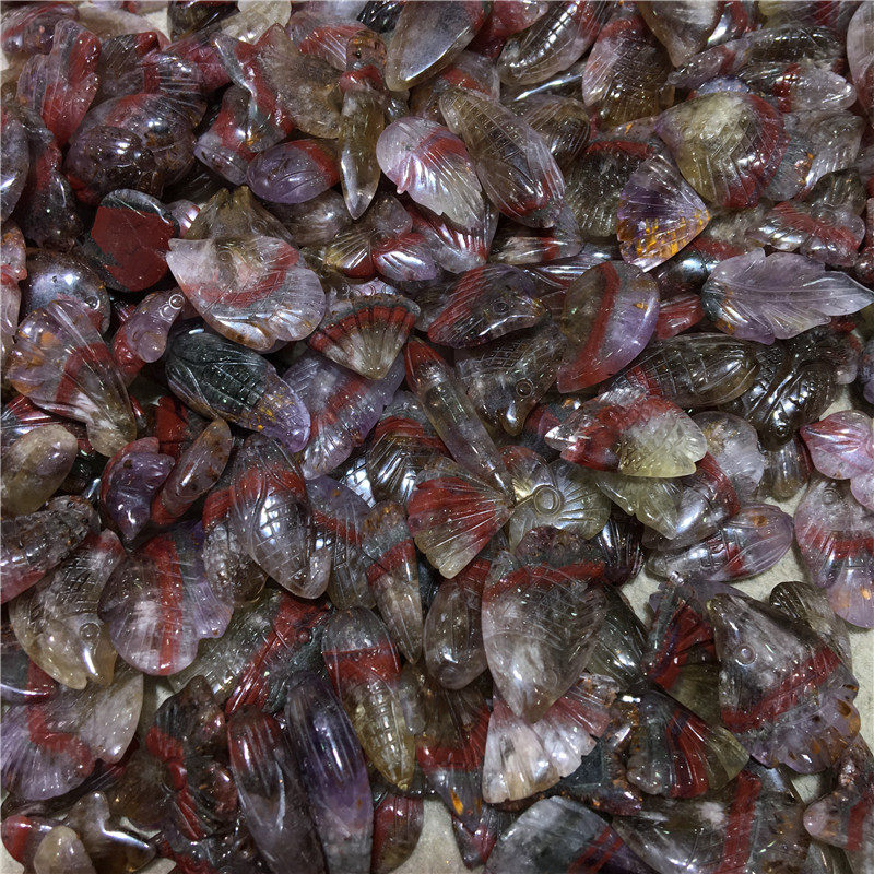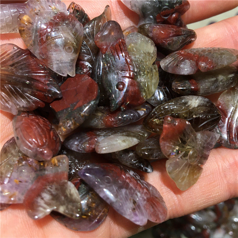 Кулон Aurora23 Aurora содержит фиолетовый титановый титановый кристалл, кристалл, резная рыба и кукуруза розовая кулона розы
