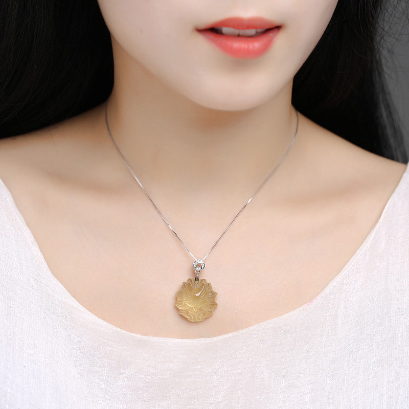 Натуральная подвеска, желтое ожерелье, цепочка, аксессуар для влюбленных, серебро 925 пробы, серебряная застежка
