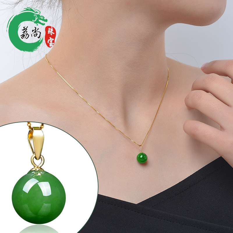 荔尚 Изумрудное ювелирное украшение, подвеска из нефрита, украшение-шарик, яшма из округа Хотан, цепочка до ключиц, браслет с одной бусиной, ожерелье, 10mm