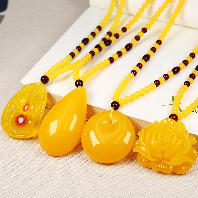 Защитный амулет из воскового агата в форме капли, пряжка, длинный свитер, этническая подвеска, демисезонное ожерелье, аксессуар, этнический стиль