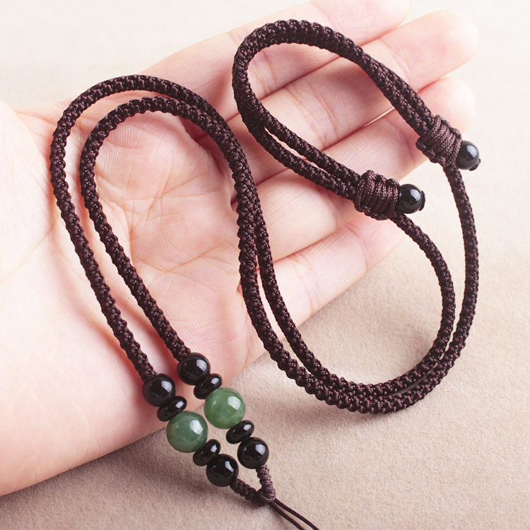 Плетеное изумрудное ожерелье из шнура ручной работы, этнический ремешок из нефрита, плетеная изумрудная подвеска, этнический стиль, DIY