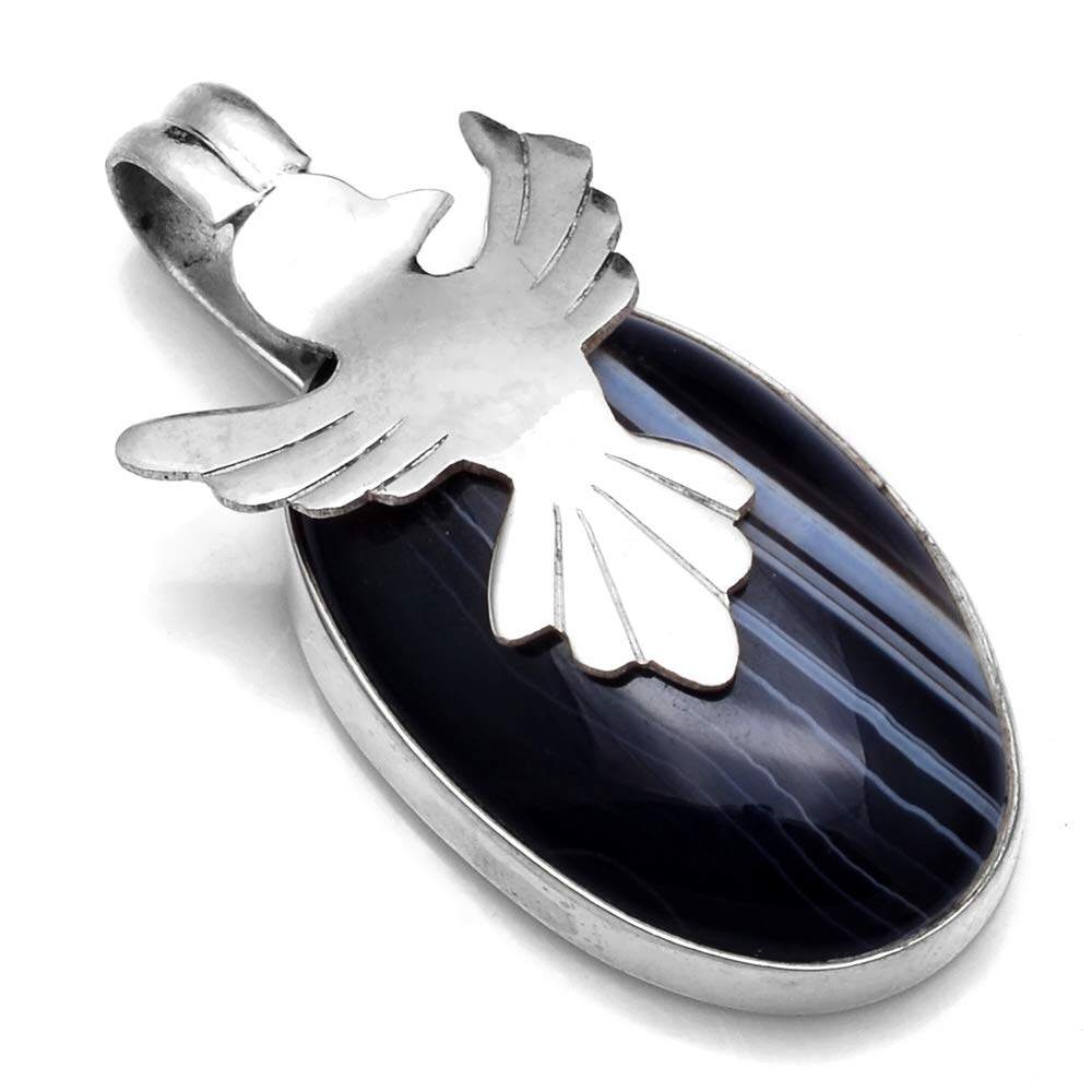 Натуральная агатовая подвеска ручной работы, Индия, серебро 925 пробы, 38